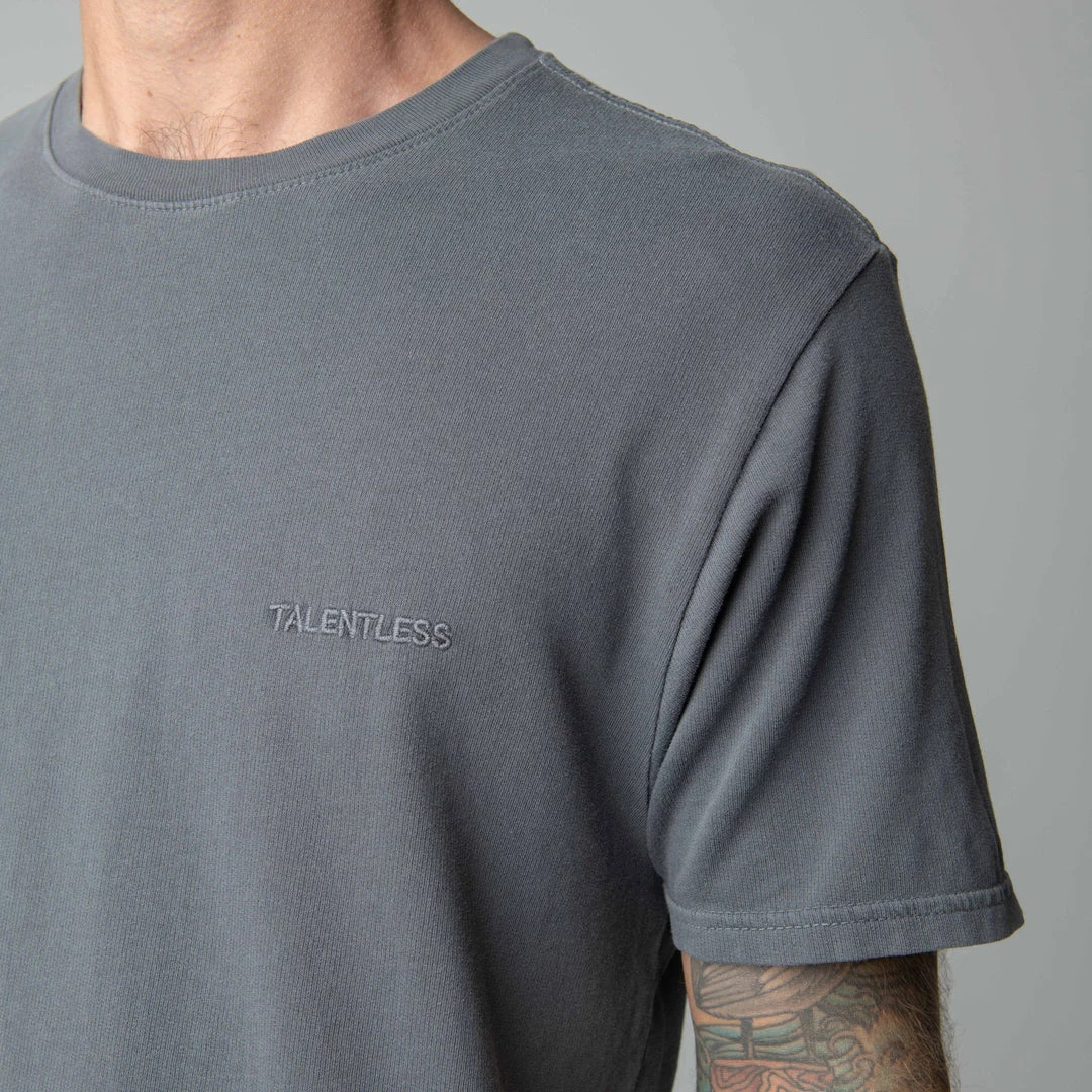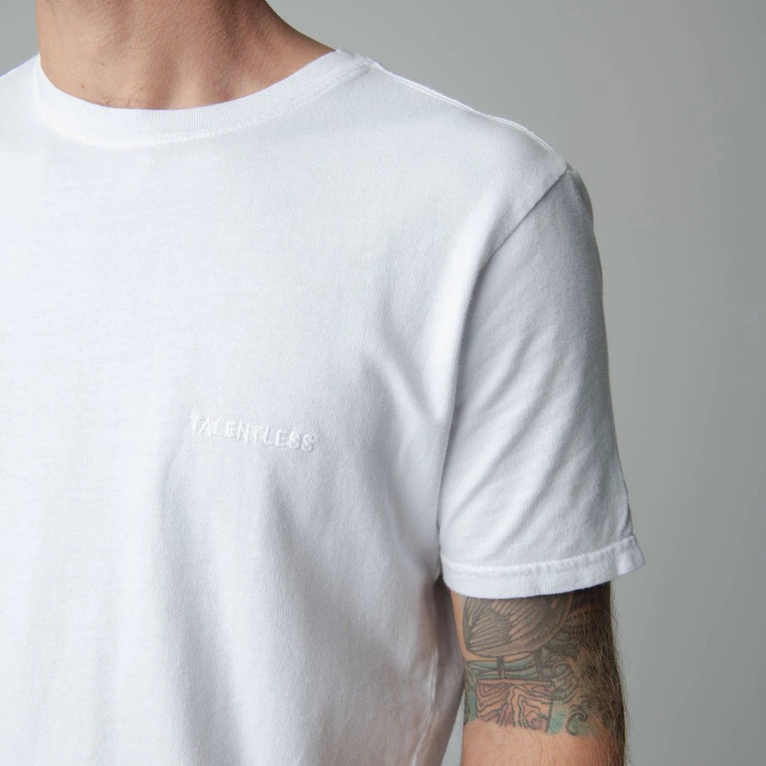 Durable heavyweight quality that’s built to last. Our french terry tee is made from garment-dyed, 100% french terry cotton for a super soft, relaxed and sturdy fit, with ‘TALENTLESS’ embroidered on the front chest.Â