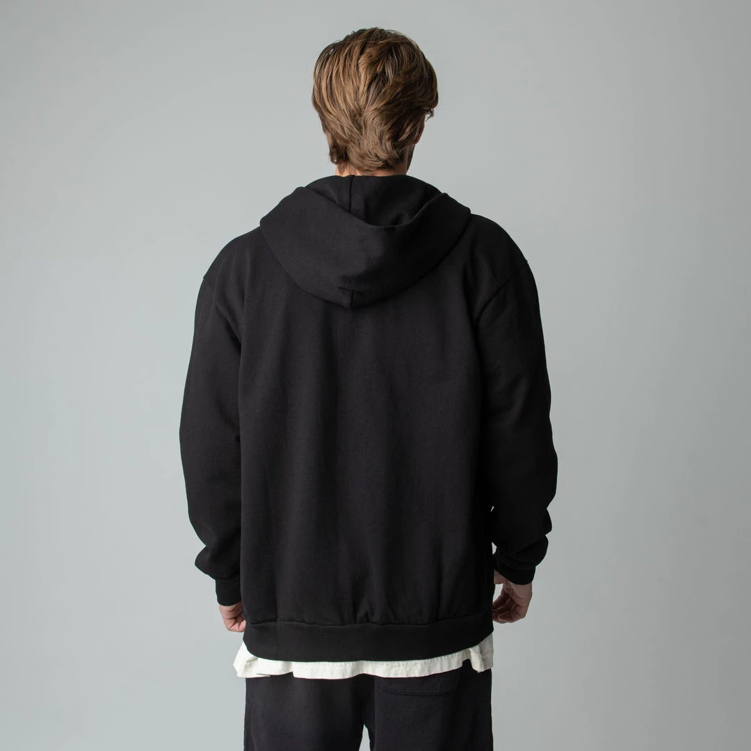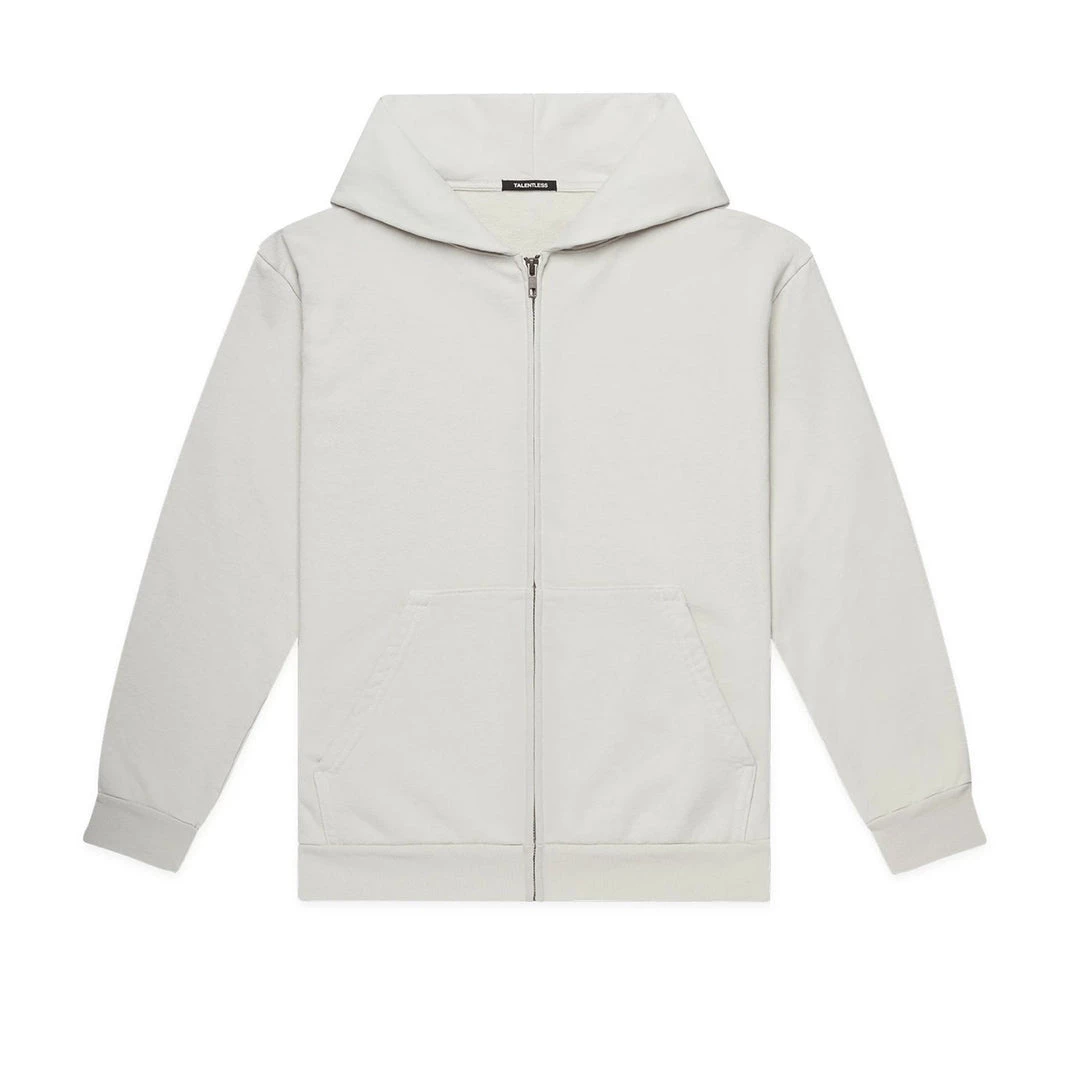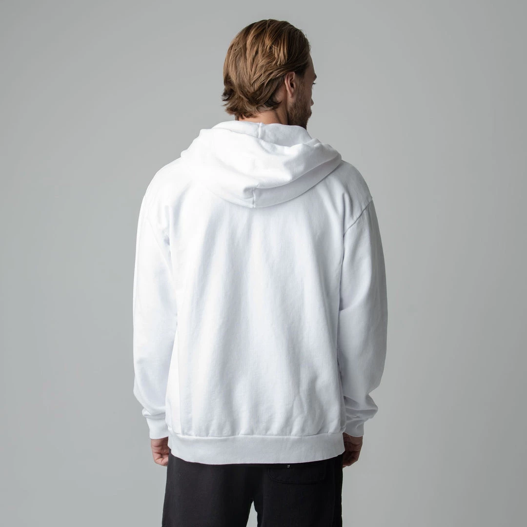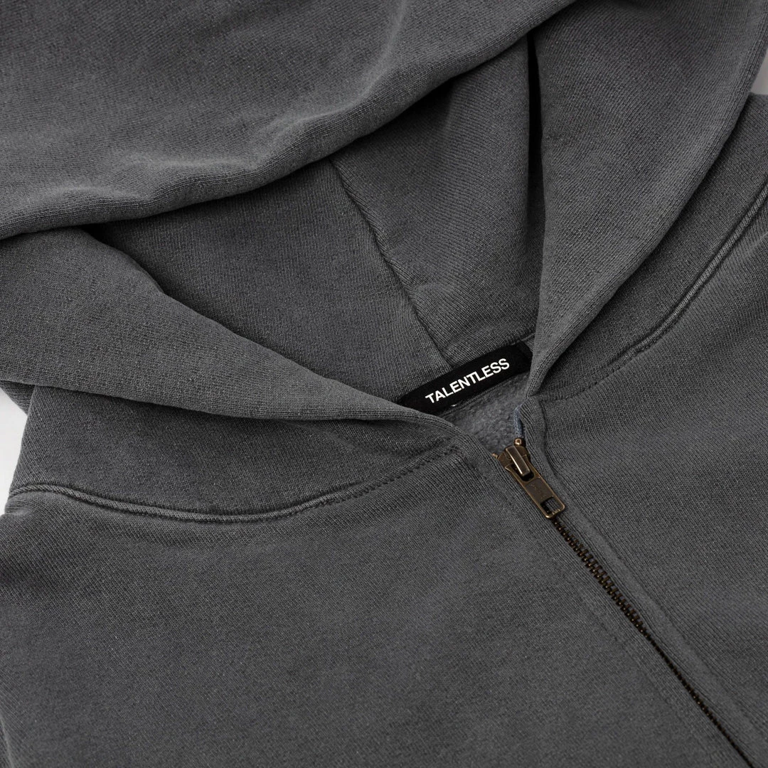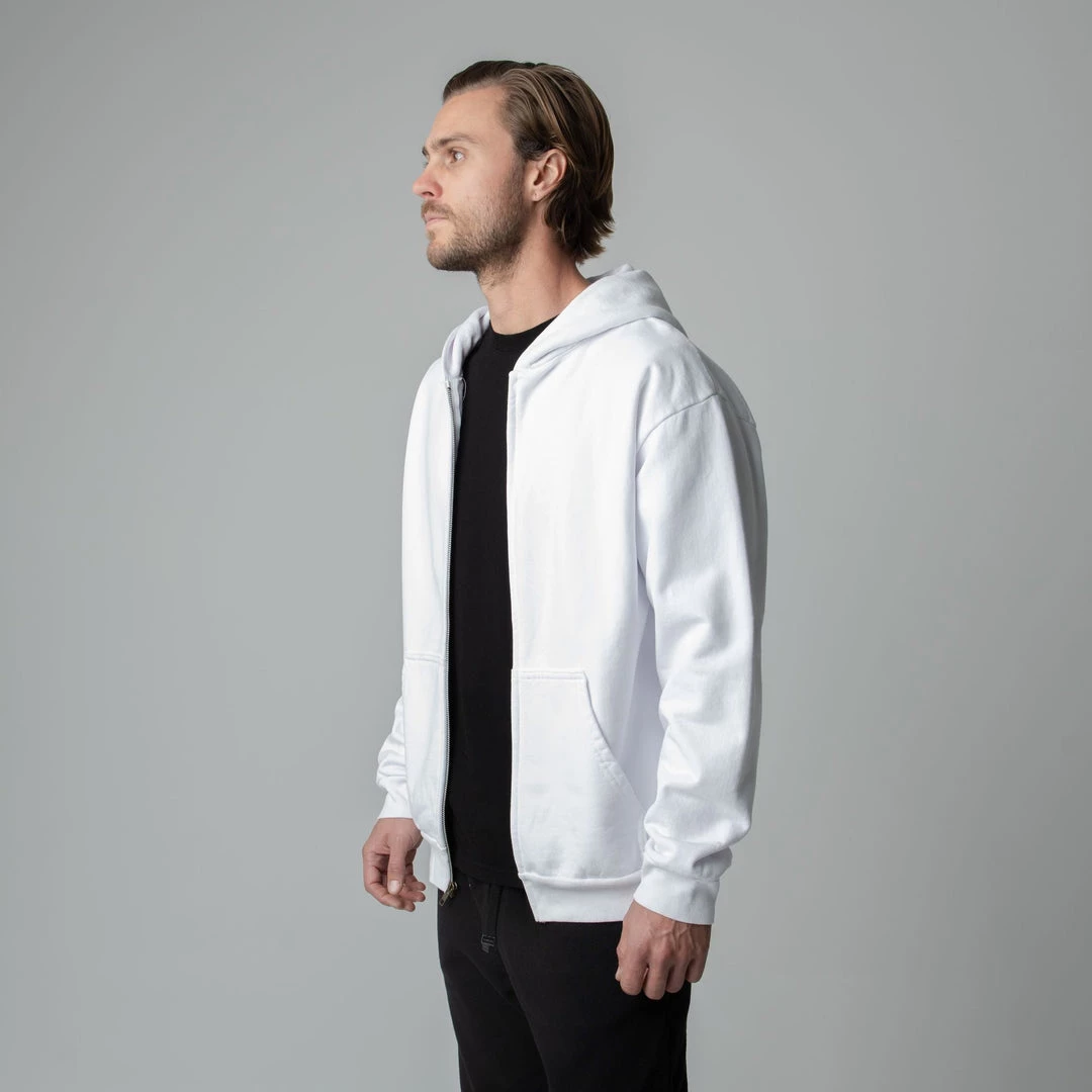 Built to mix, match, and layer. Our zip up is made from heavyweight, pigment-dyed heavyweight cotton fleece and is enhanced with a potassium finish for exceptional softness. Our zip up hoodie features an antique brass colored zipper, a double-lined hood and a kangaroo pocket. This piece is the essence of comfort and quality.