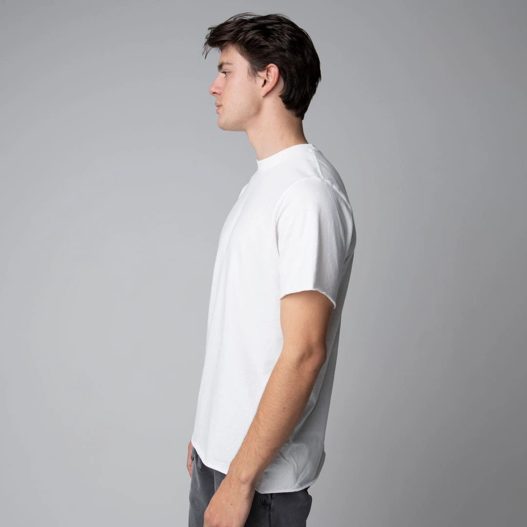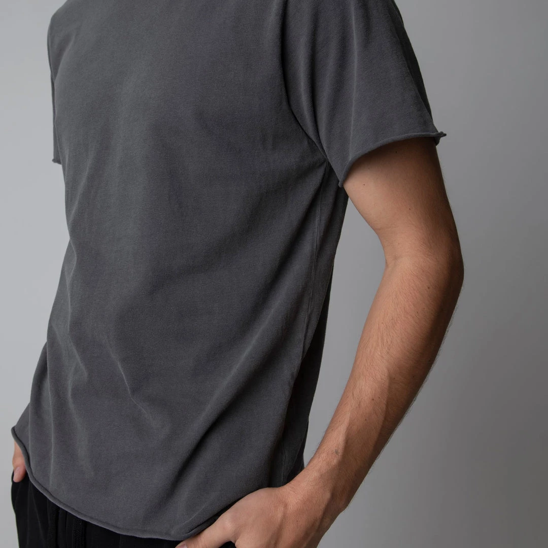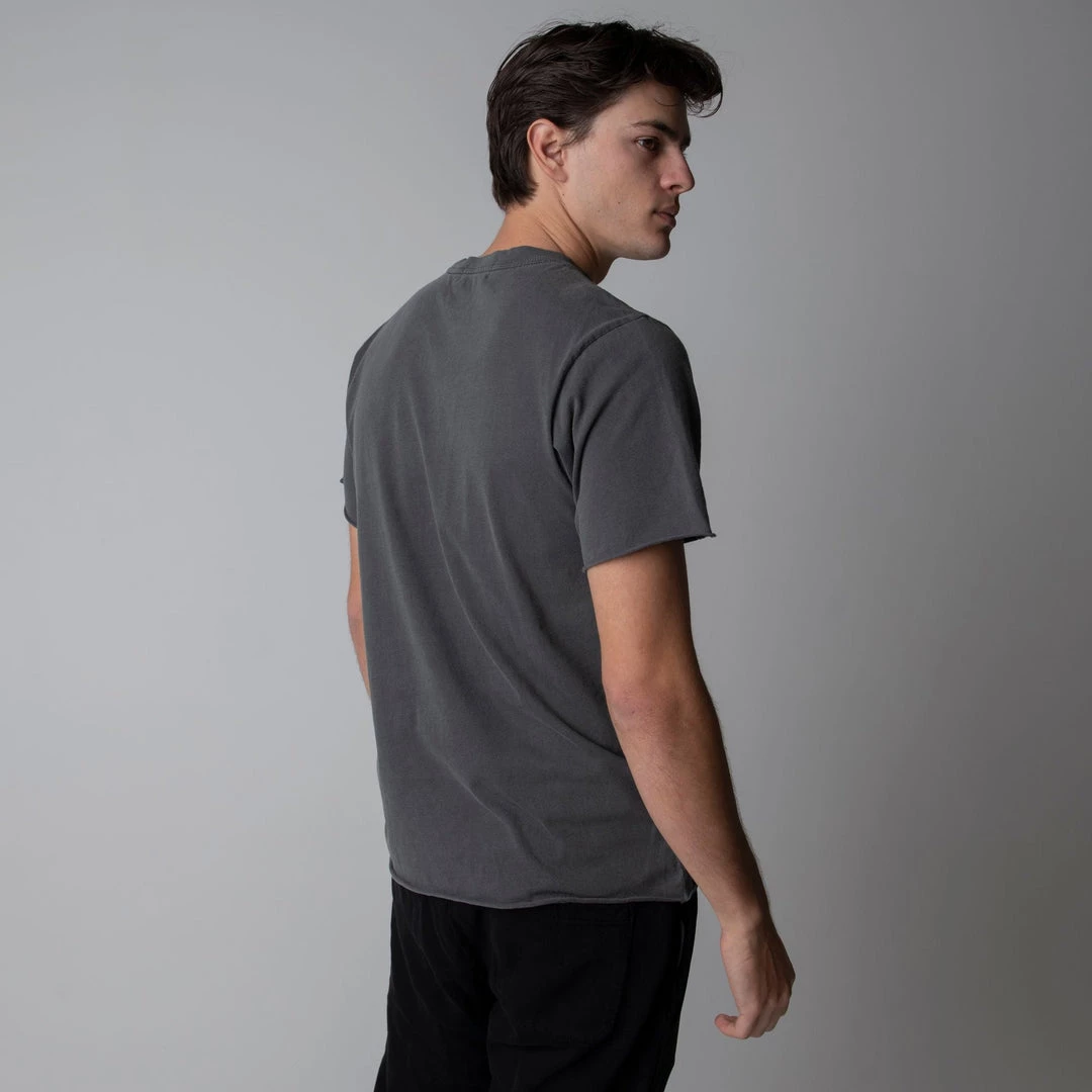 An updated basic. This hand-cut, raw hem tee is elevating the t-shirt game. The soft cotton construction delivers a relaxed fit that is live-in-soft. Complemented by tonal stitching and draping perfectly on the body, this Men’s Roller Tee is built to last.
