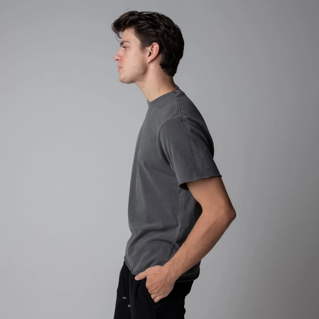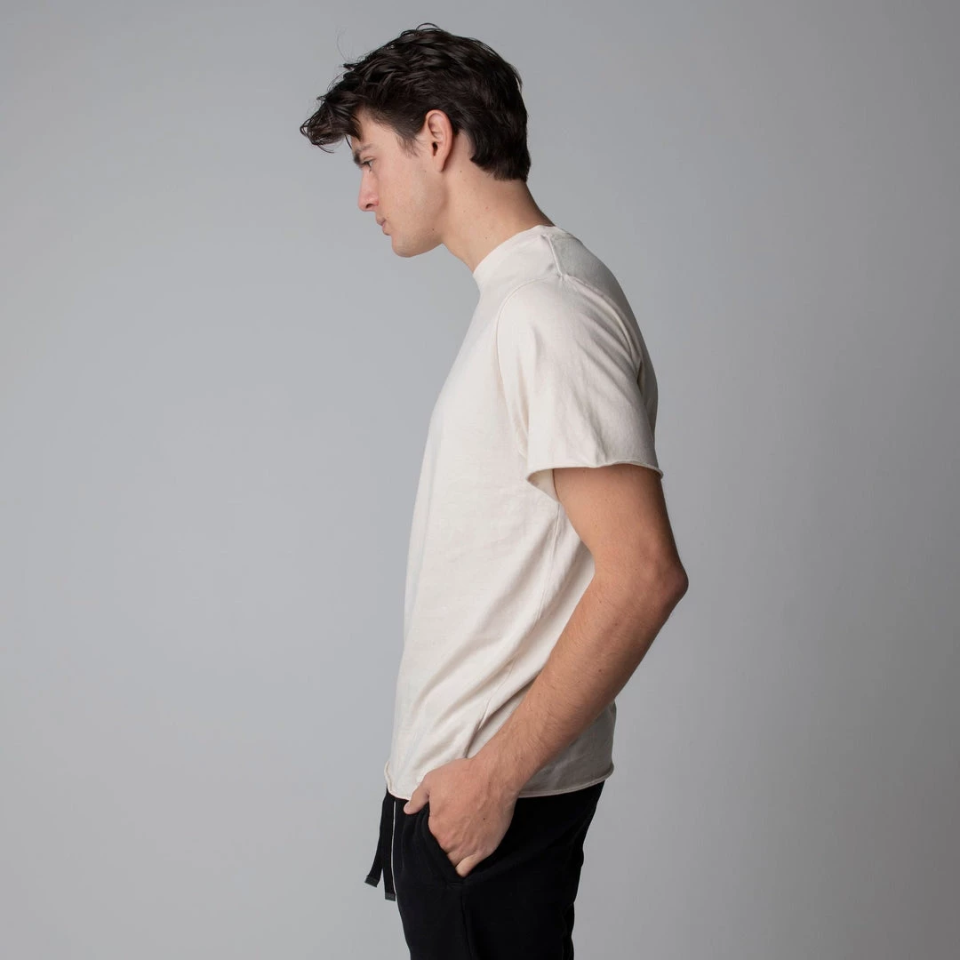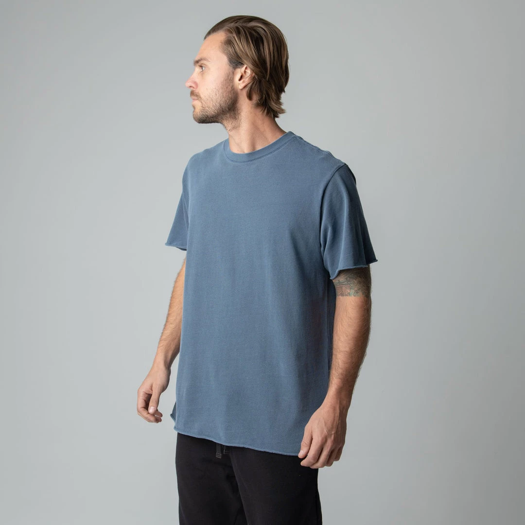 An updated basic. This hand-cut, raw hem tee is elevating the t-shirt game. The soft cotton construction delivers a relaxed fit that is live-in-soft. Complemented by tonal stitching and draping perfectly on the body, this Men’s Roller Tee is built to last.