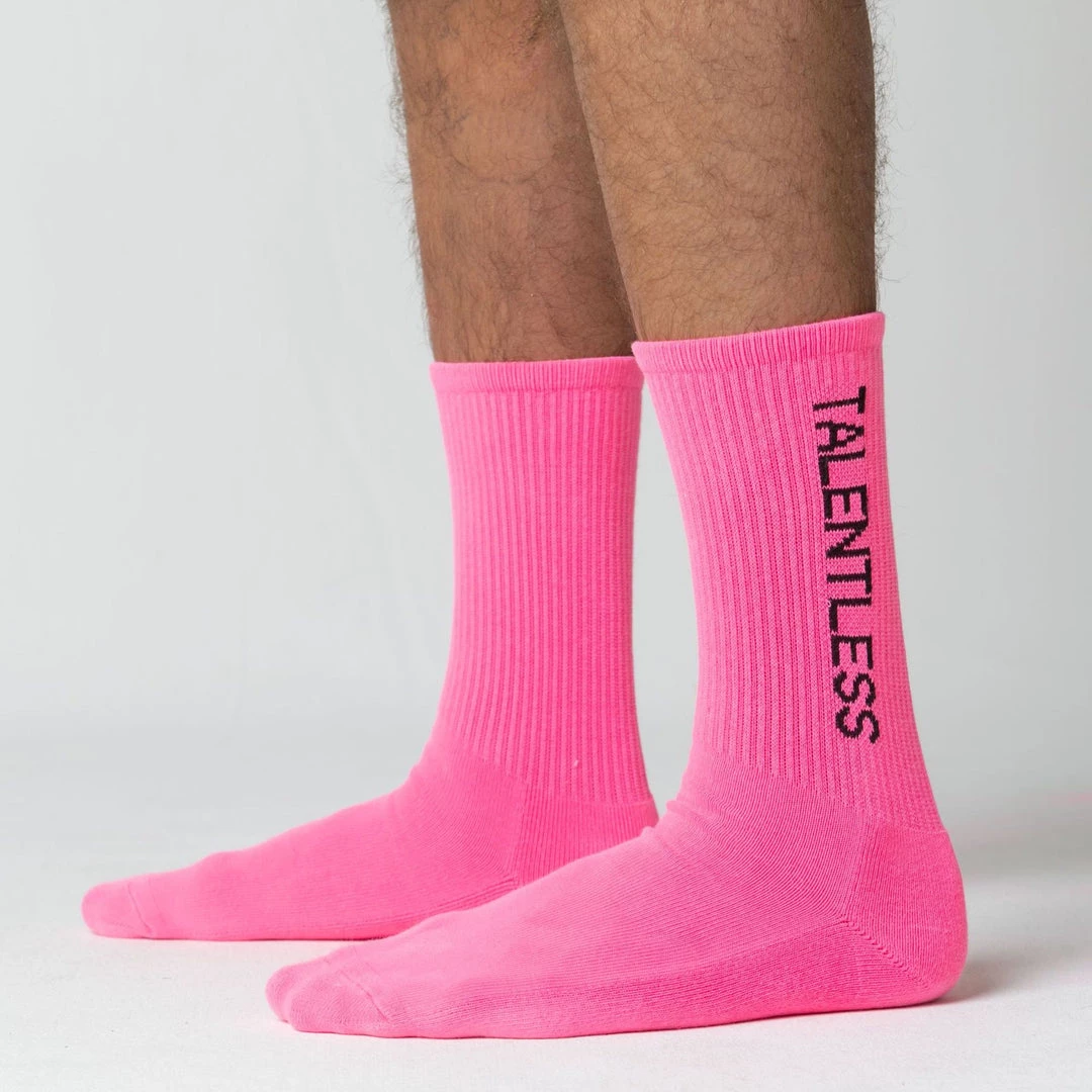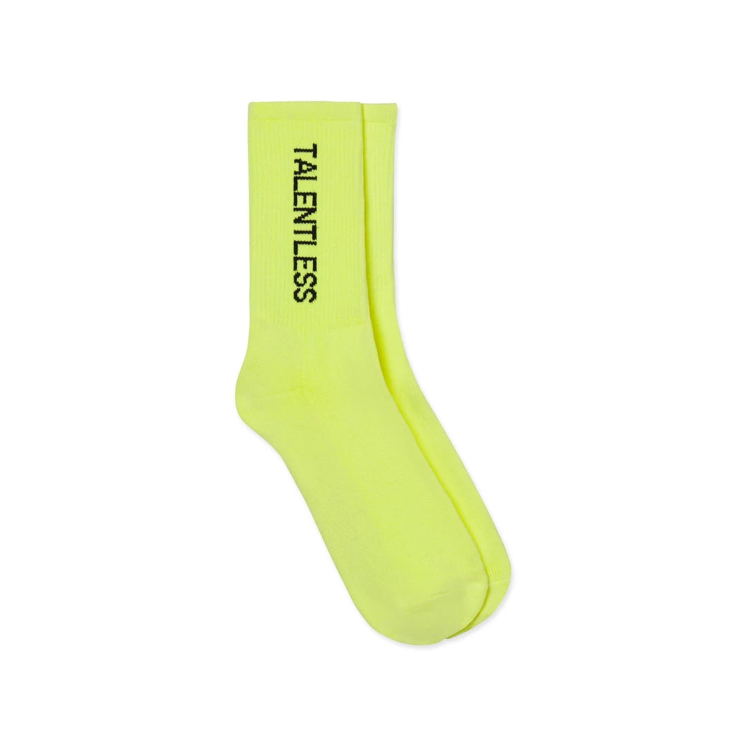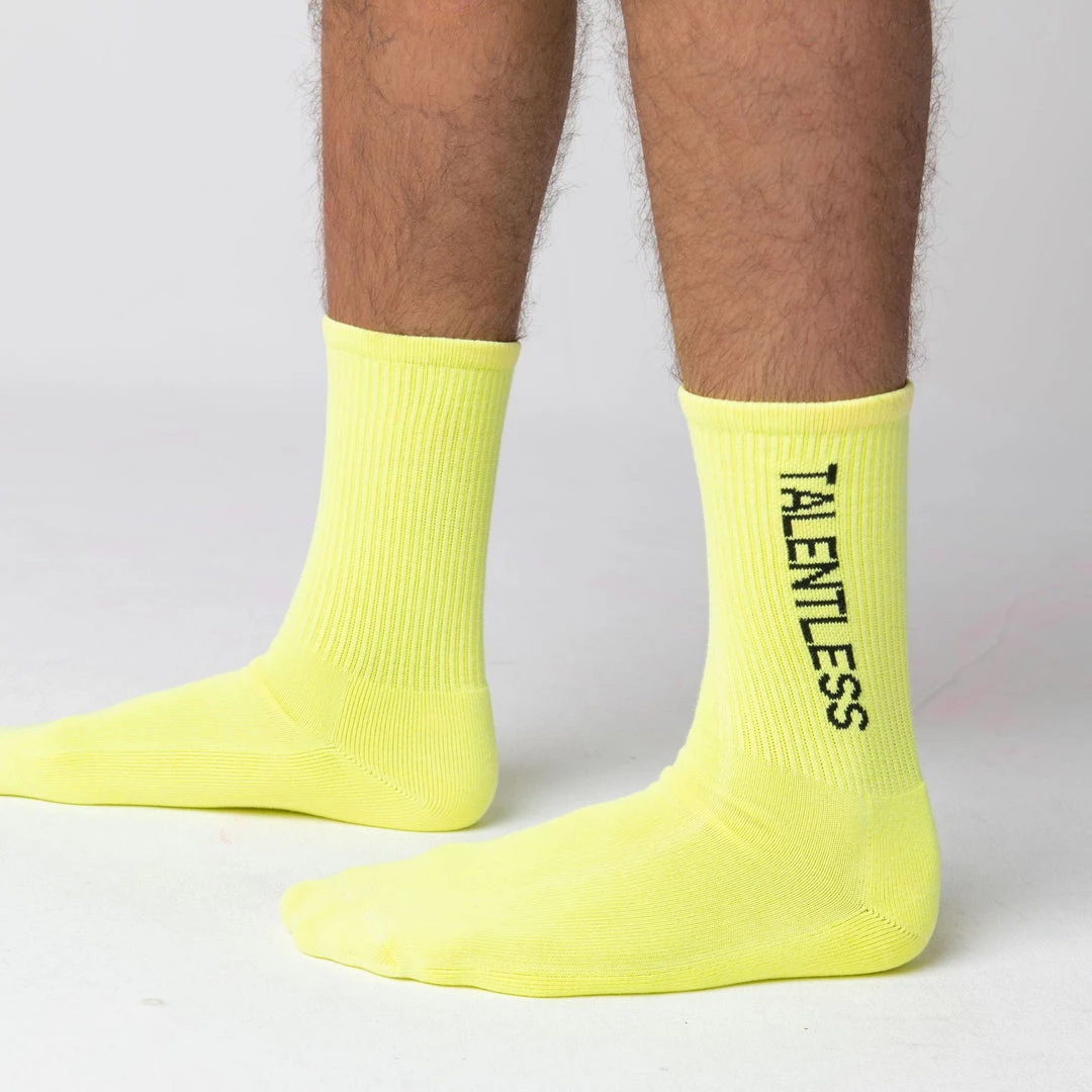 Discover NEON. A wide range of bright shades and new silhouettes that make the perfect addition to summer. Make a statement from head to toe in our ultra-comfortable Neon collection socks branded above the ankle with our signature Talentless logo. Available in Neon Green, Neon Yellow, and Neon Pink.Â