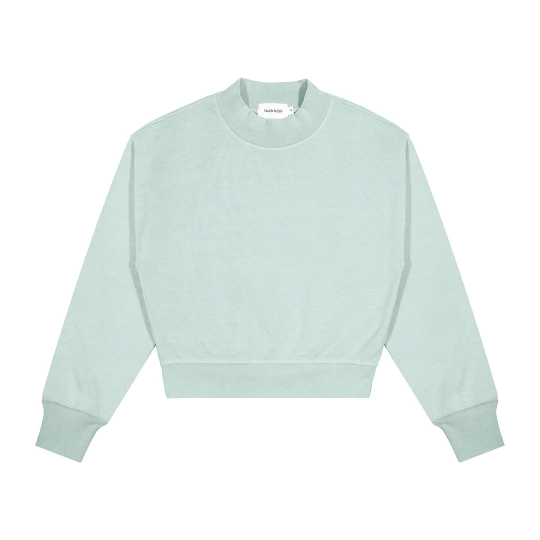 A custom-fit cut for layering, the Pastel mock crewneck is fabricated with ultrasoft french terry. It has a cropped hem with a thick neckline. The elongated cuffs give the top a sophisticated look to be dressed up or down.