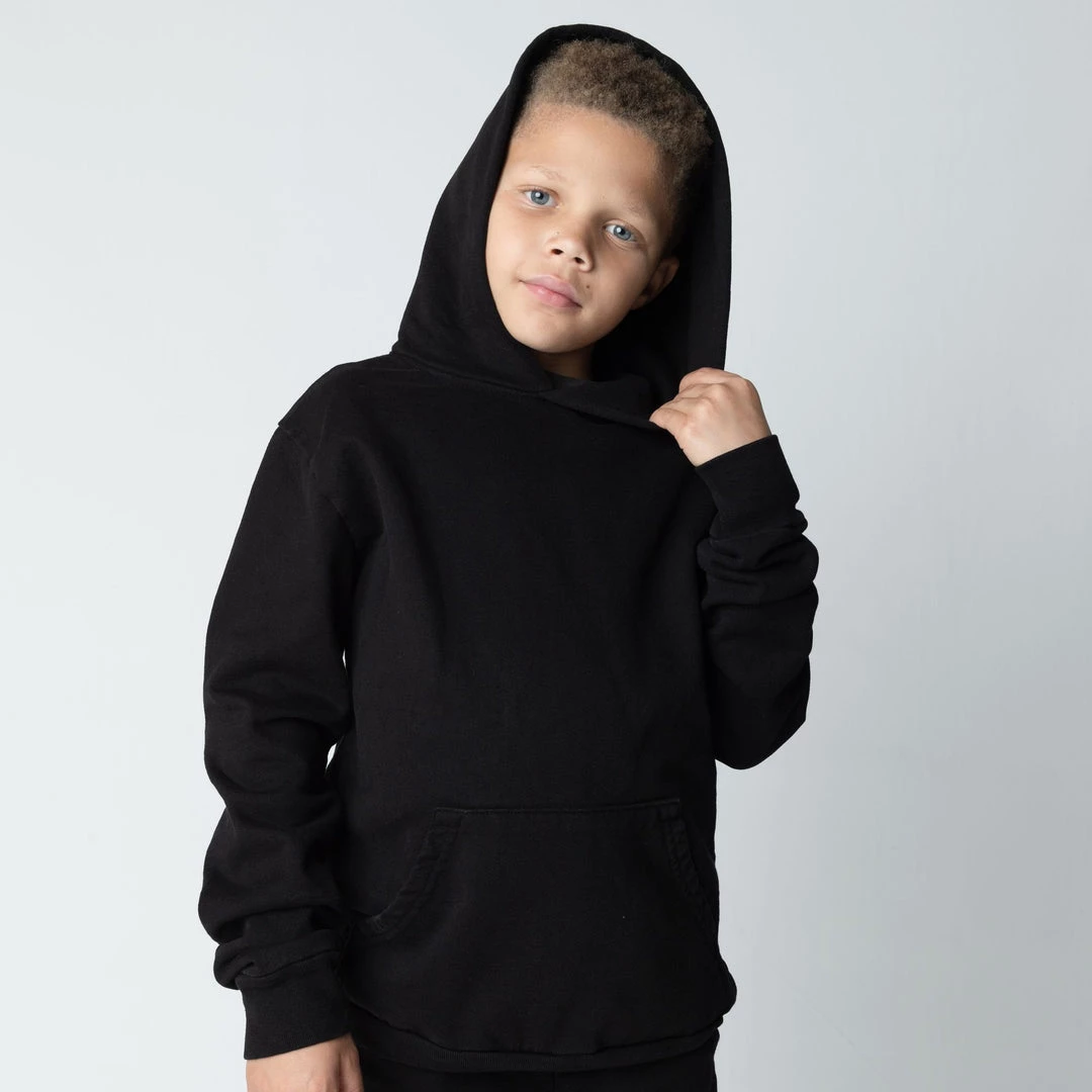 Introducing KIDS CORE. A curated collection of our best-selling, premium quality, everyday classics for the smallest Talentless enthusiasts. Crafted from extremely soft, lightweight fabric and features a kangaroo pocket, cotton-jersey lined hood, and ribbed cuffs. Each Talentless piece undergoes an enzyme wash to enhance its softness and ensure lasting quality. Now available in our CORE tones, Pitch Black, Bone, and Steel Grey.