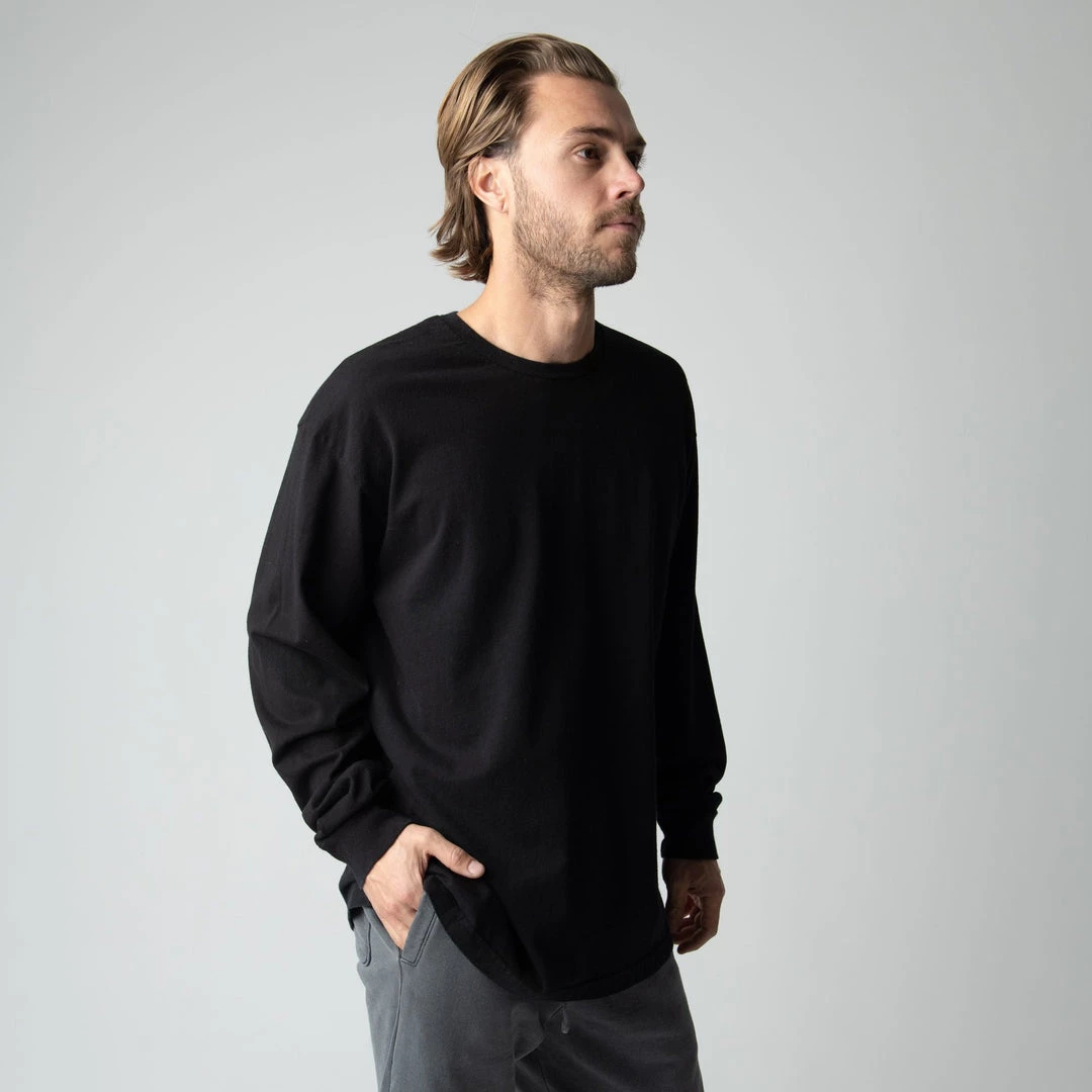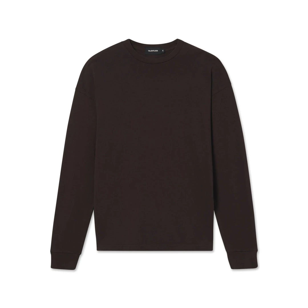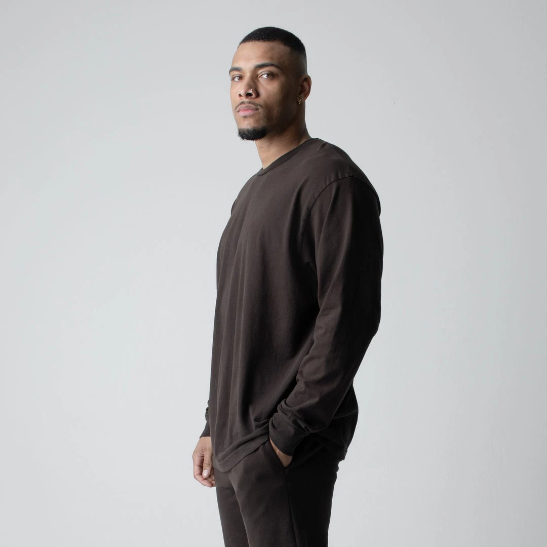 This essential basic has a modern edge. Our drop shoulder long sleeve tee features an oversized fit with dropped shoulders making it a street style dream. Made with heavyweight jersey fabric this piece perfectly balances the fine line between elevated and relaxed. Now available in Dark Chocolate and Pine.