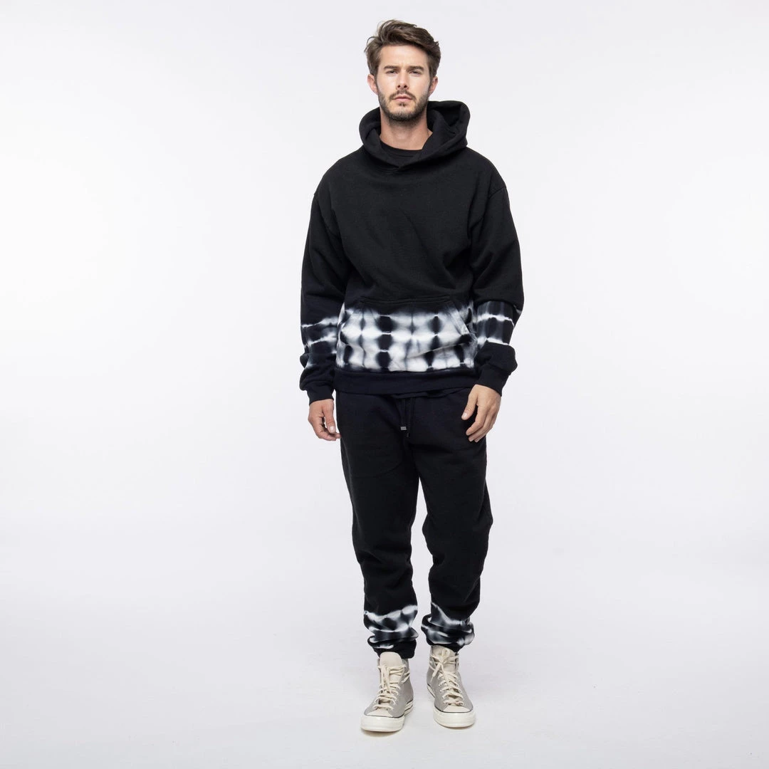 The heavyweight cotton fleece hoodie at 500 GSM includes a kangaroo pocket, double-lined hood, and ribbed cuffs.Â
