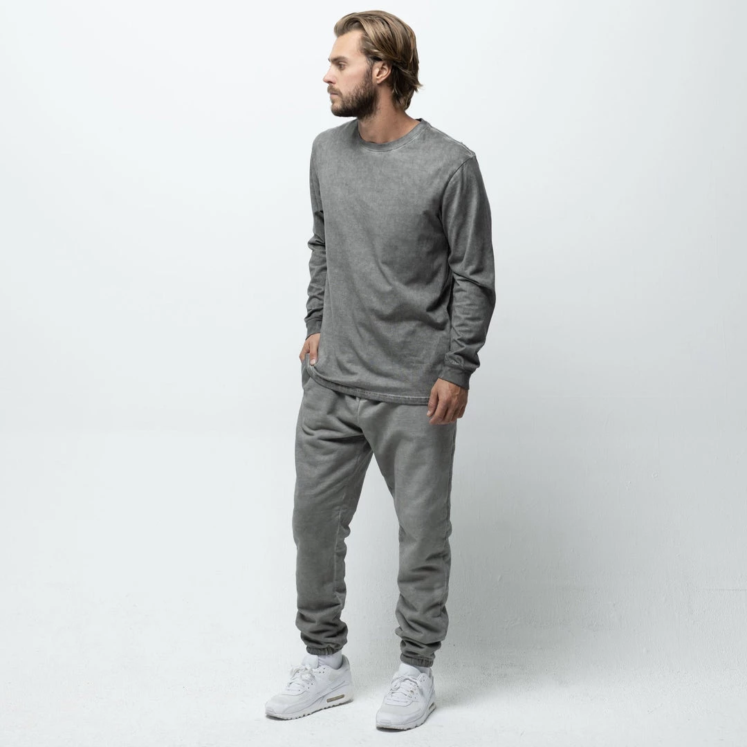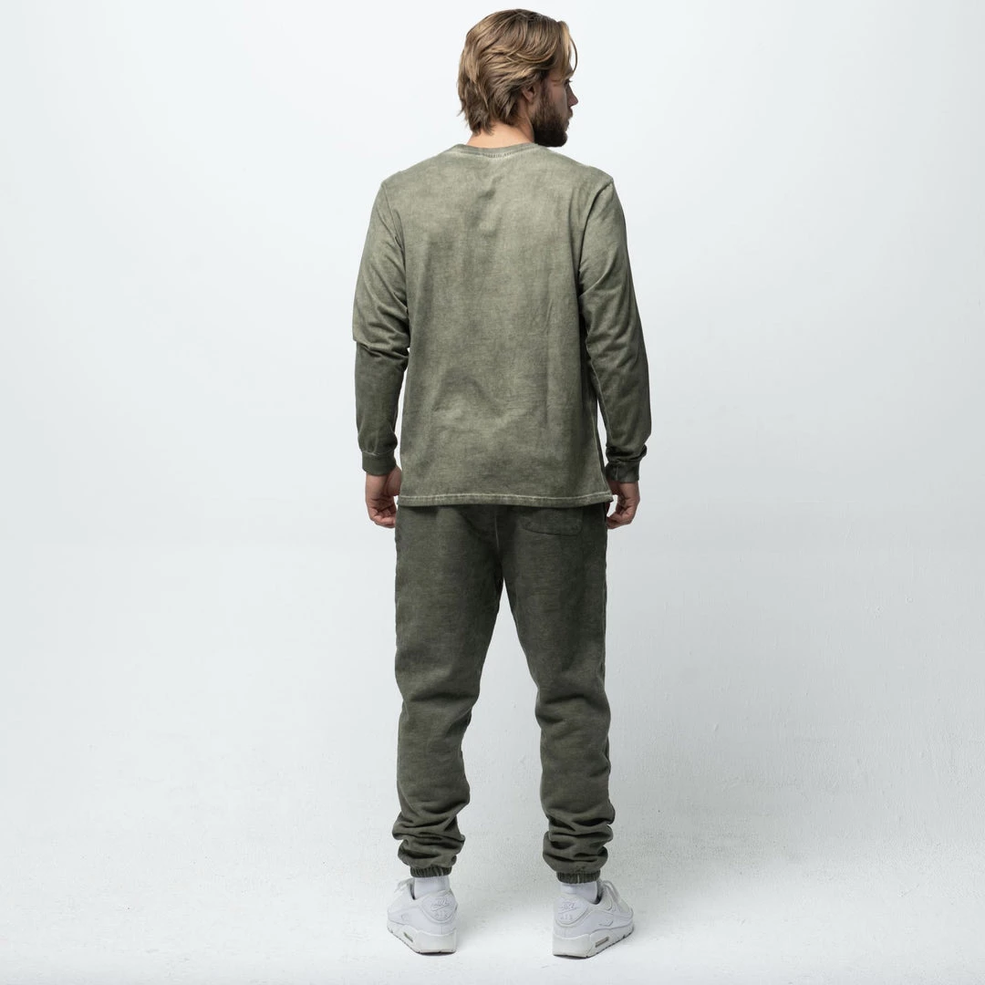 The oil stain crewneck sweatshirt is your whenever, wherever pullover. Its sturdy fabric is durable yet elevated. Each piece undergoes an extensive treatment process that includes garment washing, quality pigment dye, high-heat binding and an extra wash for natural base fading. The high quality cotton fleece gets cozier with each wear.