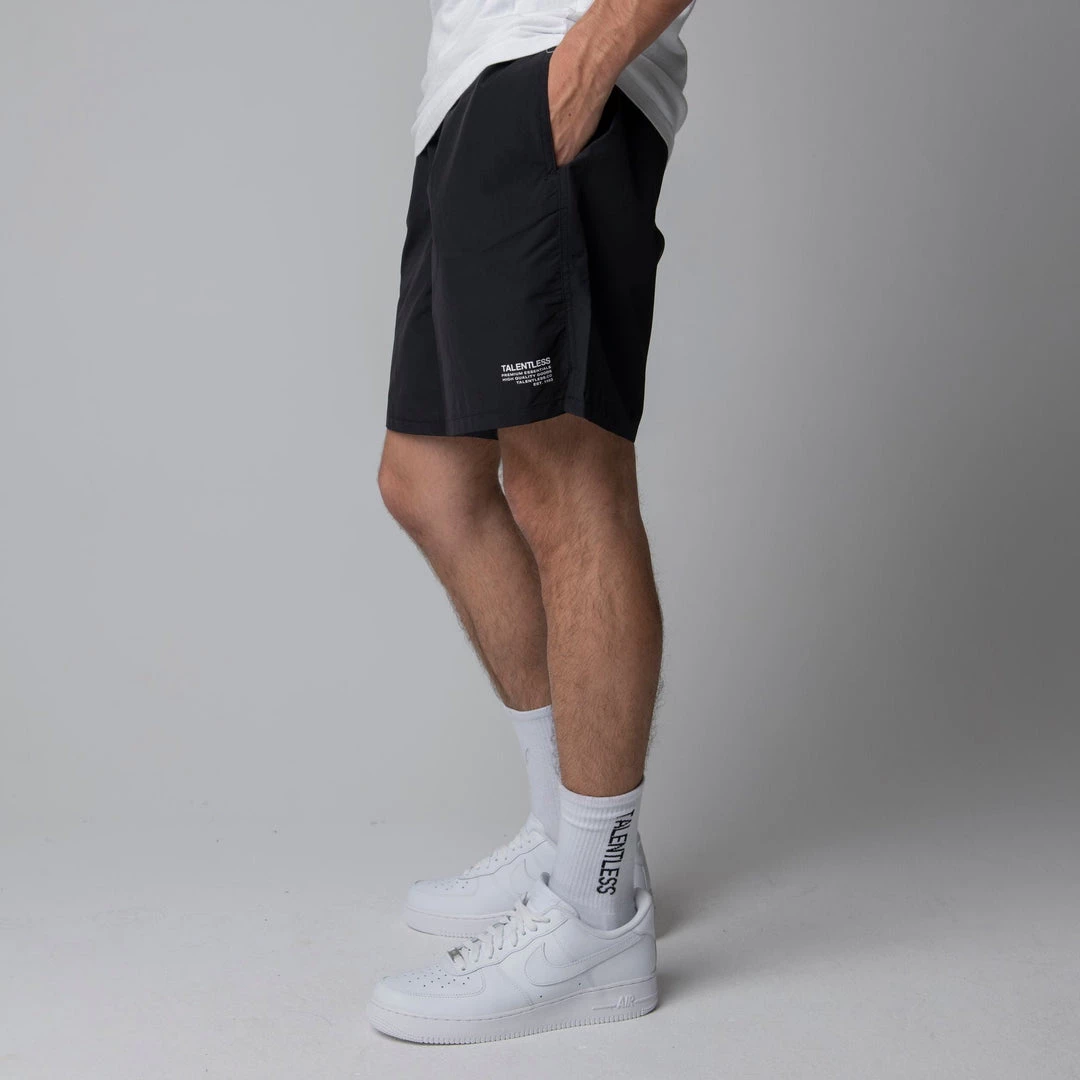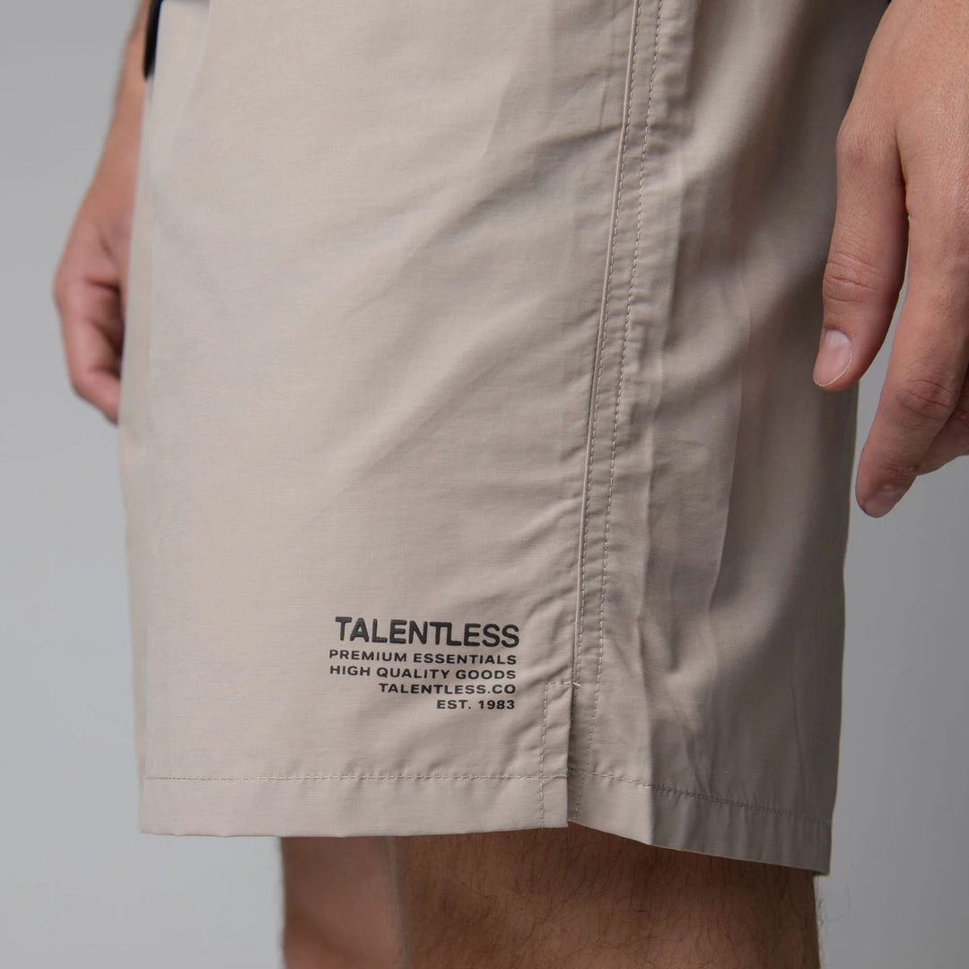 Relaxed Fit Nylon Short with elastic waistband, interior drawcord and 6″inseam.