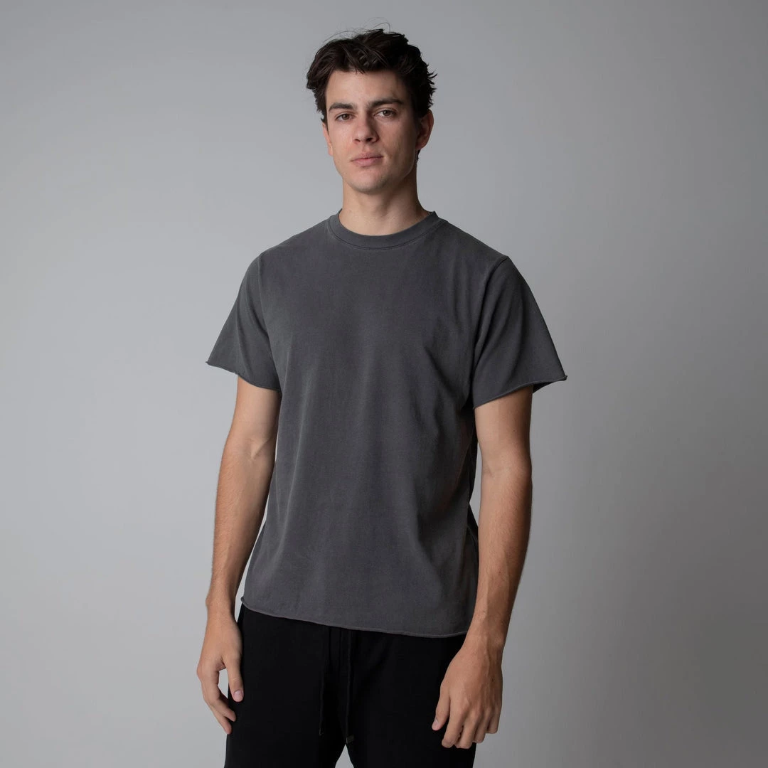An updated basic. This hand-cut, raw hem tee is elevating the t-shirt game. The soft cotton construction delivers a relaxed fit that is live-in-soft. Complemented by tonal stitching and draping perfectly on the body, this Men’s Roller Tee is built to last. Now available in a pack of two.