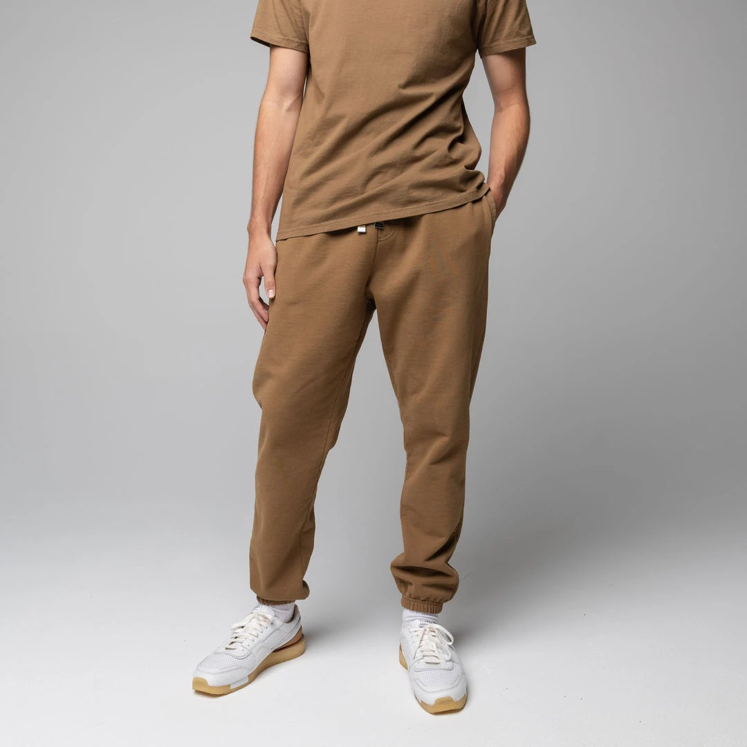 Our heavyweight Core sweatpants coin together comfort and quality, with the tones and textures of the mid-century. Built from our highest quality 100% cotton fleece, this piece is sturdy and built to last heavyweight fabric. A relaxed fit, the sweatpants have an elasticated drawstring waist and double pockets at the side seam – open and zipper. Now available in five mid-century tones, Mocha, Merlot, Cedar Green, Pewter, and Midnight Blue.