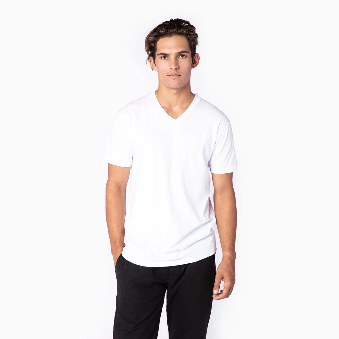 Our core collection balances the fine line between elevated and relaxed. Our v-neck tee is cut perfectly on the chest and made from 100% cotton, garment-dyed fabric, with a soft feel and relaxed fit. Full of versatility, this piece will never go out of style.