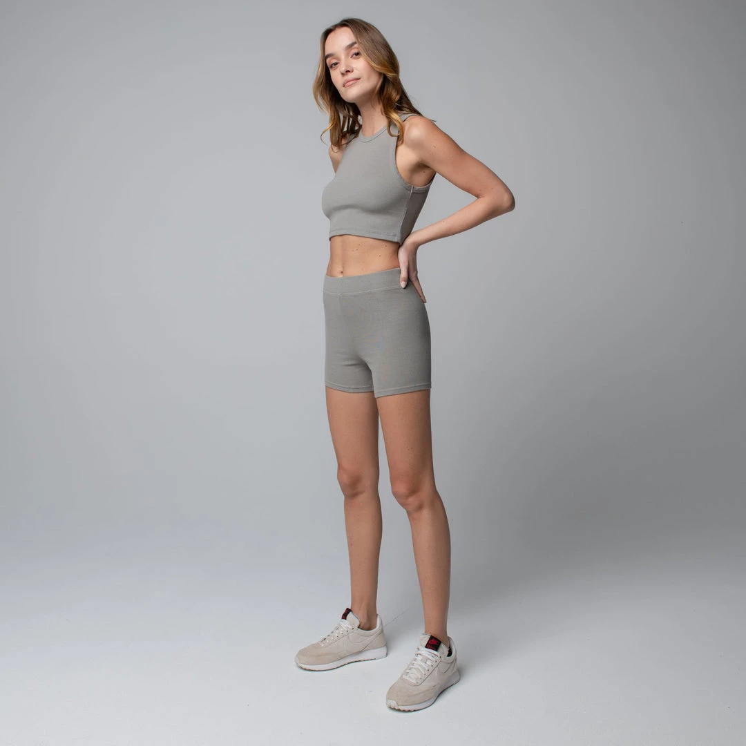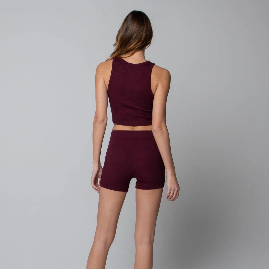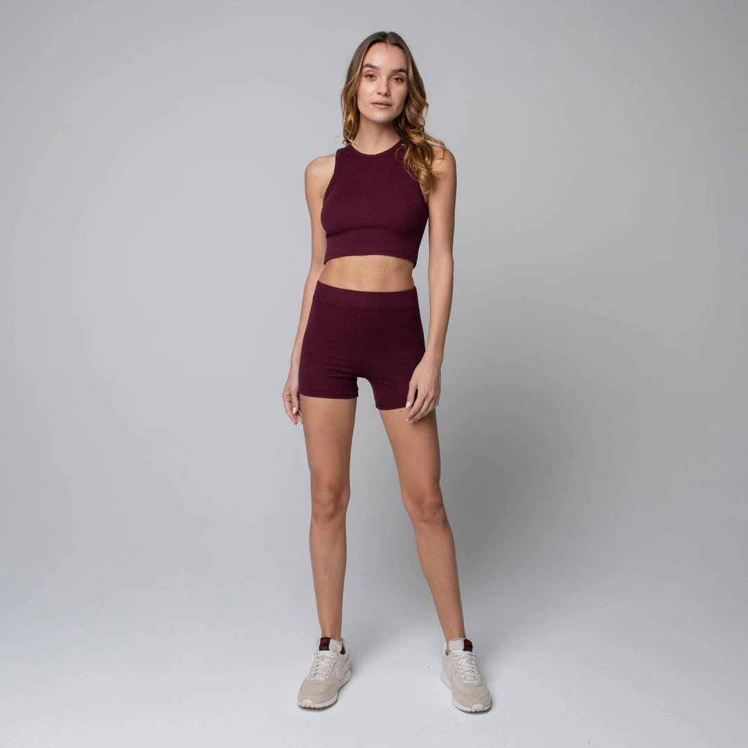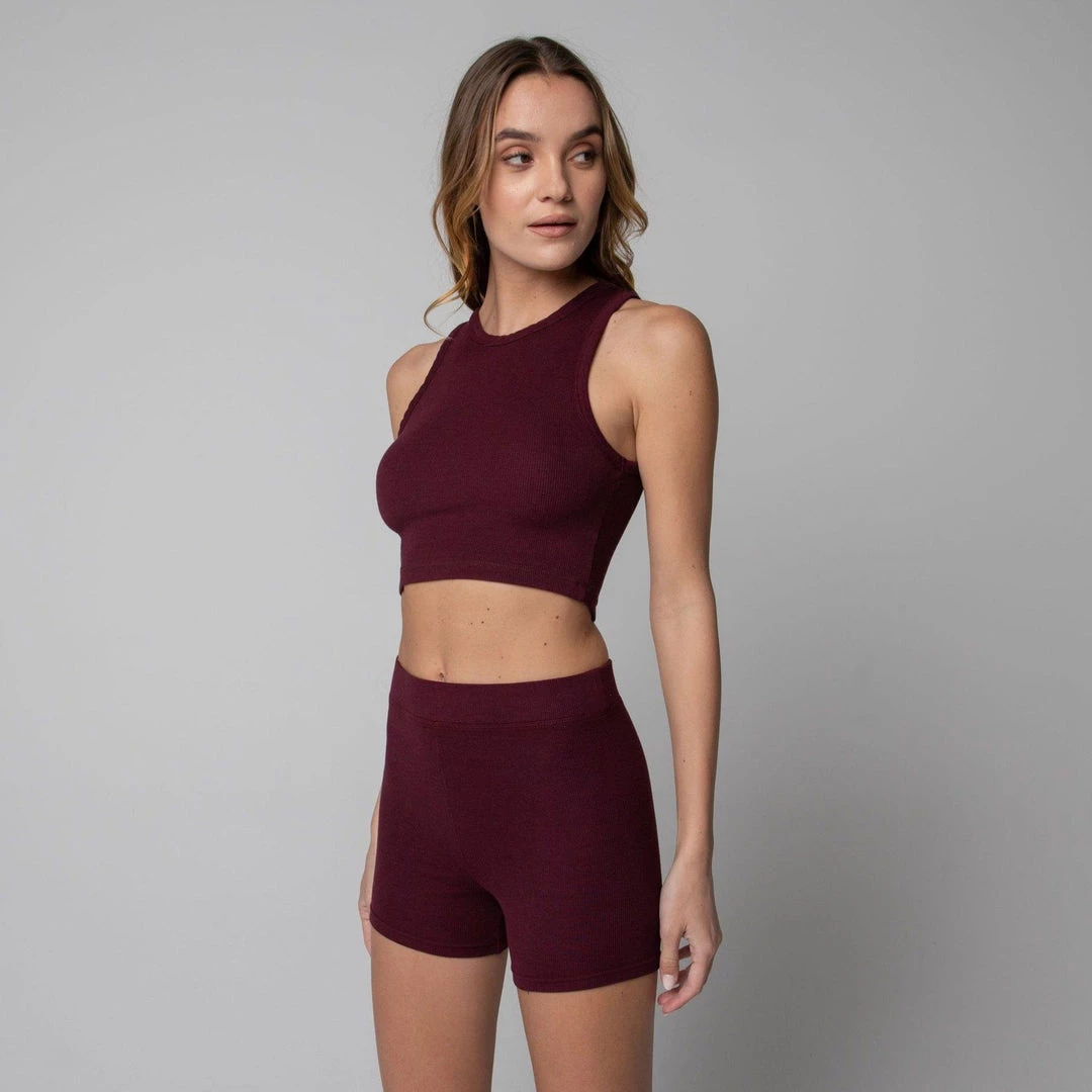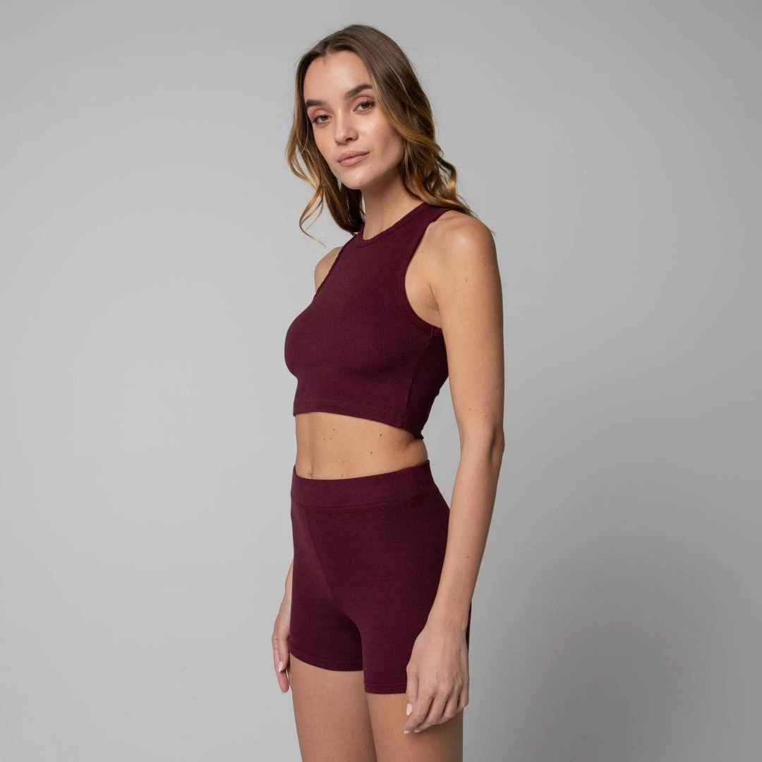 While the mid-century era was infamous for clean lines, the Rib high-neck tank was made to complement and shape your curves. Available in three rich mid-century inspired tones, Mocha, Merlot, and Pewter, and crafted from micro modal and supima cotton, you’ll want to make this a set by pairing with our Rib Bike Short.Â