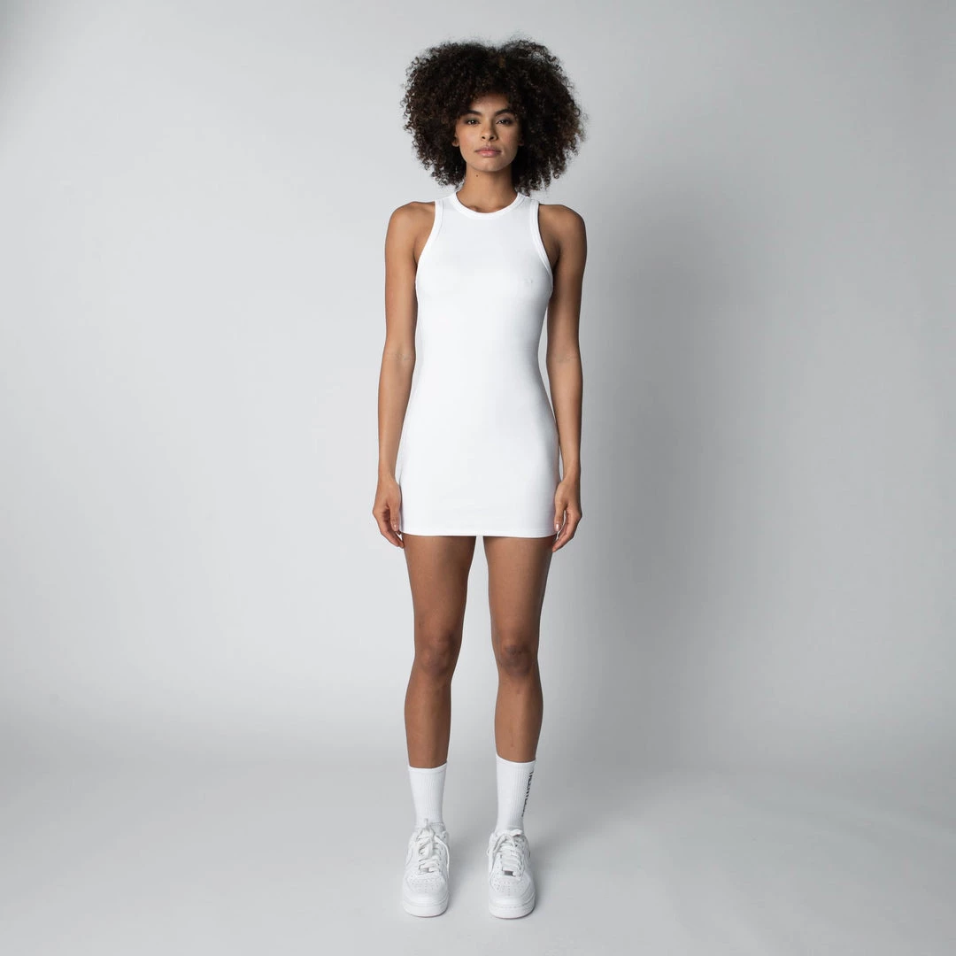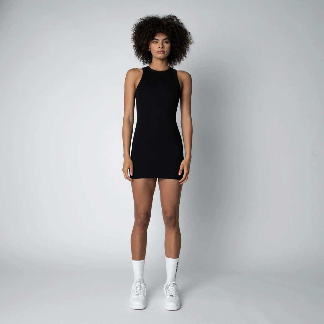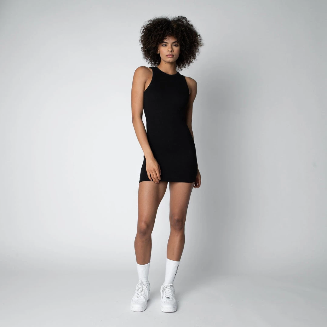Body-hugging, made to contour. The Rib high-neck dress is designed to accentuate your form with its textured stretch. Made from a combination of micro modal and supima cotton to sculpt, flatter, and enhance your body.