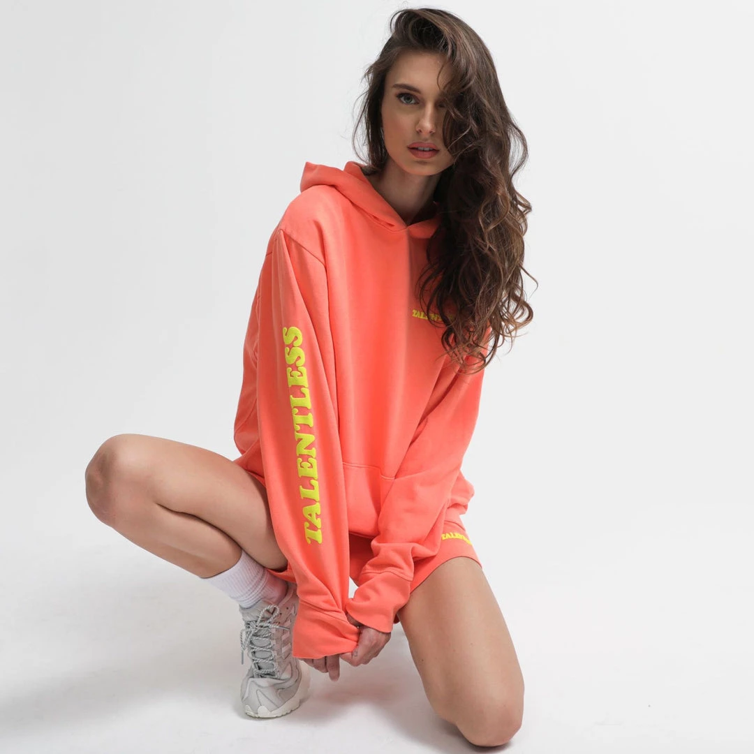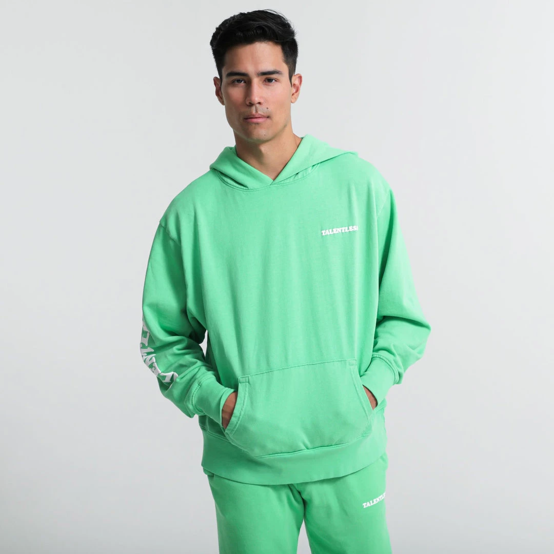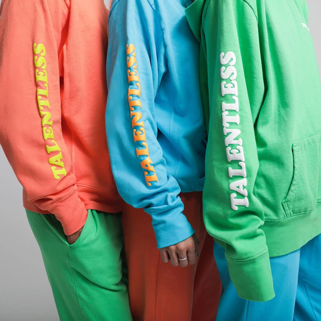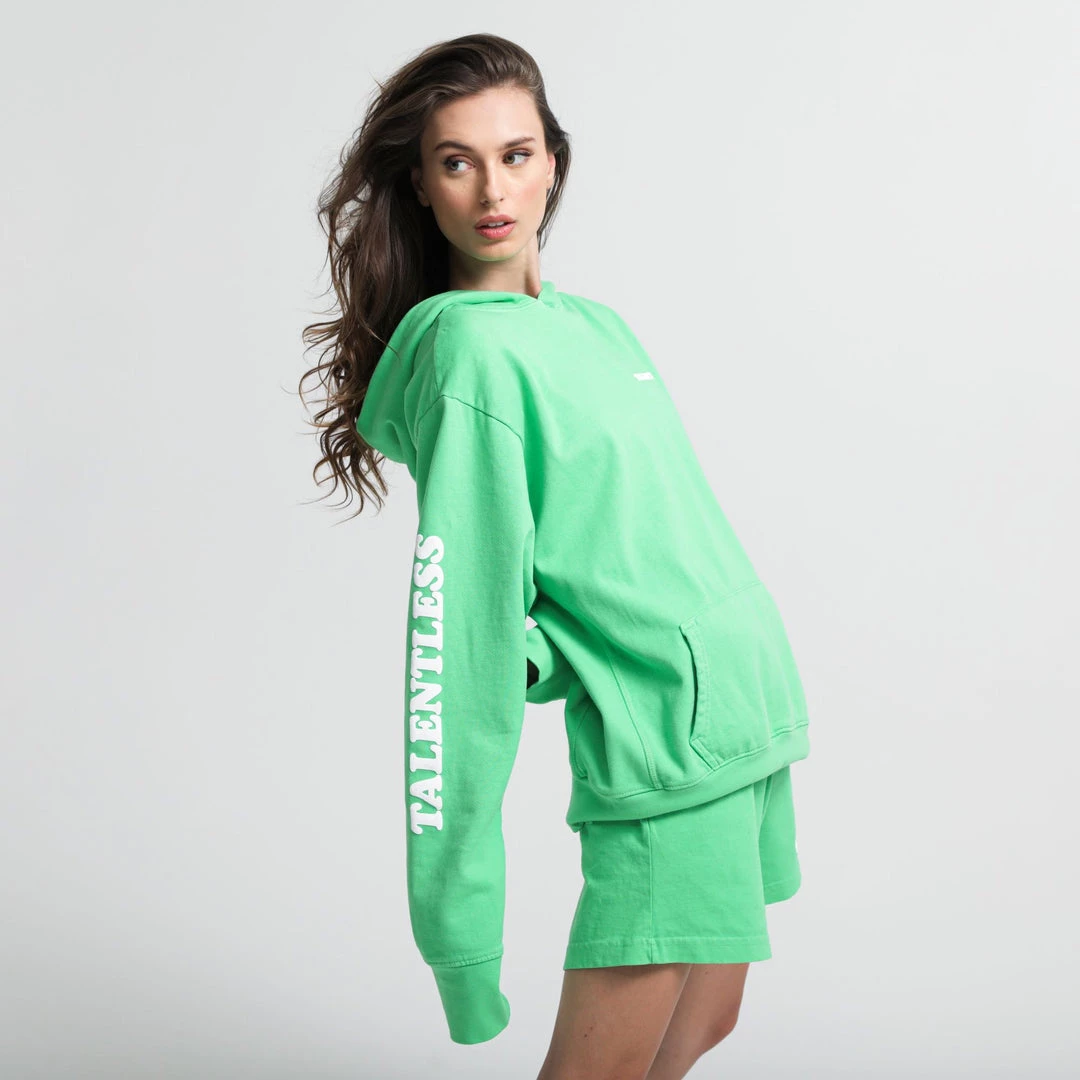 Our Highlighter Oversized Hoodie makes it easy to brighten up your wardrobe. Branded with an updated technique, the puff print Talentless logo makes an elevated statement. Our lightweight hoodie is cut from soft 100% cotton fleece. It features a classic hood, kangaroo pocket, and ribbed cuffs.Â