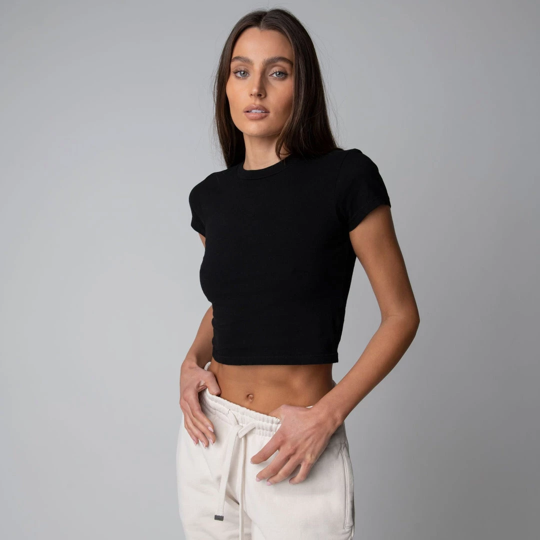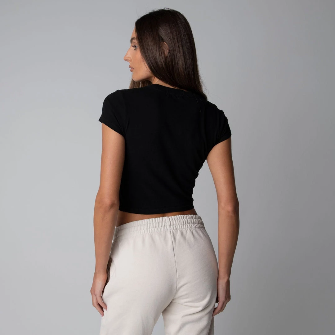 Perfectly petite, the baby tee was created to pair well with everything. Effortlessly sexy, this tee was constructed with 100% cotton for a soft feel and flawless fit.Â