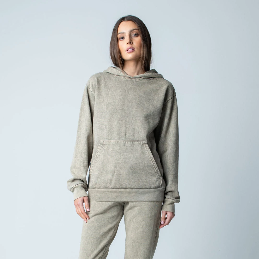 One of granite’s most desirable features is it’s uniqueness, that’s why our granite collection is dyed by hand to ensure each piece is one of a kind. The Granite Wash hoodie is made from high quality heavyweight cotton. This piece features a kangaroo pocket, cotton-jersey lined hood, and ribbed cuffs. Each Talentless piece undergoes an enzyme wash to enhance its softness and ensure lasting quality. Â