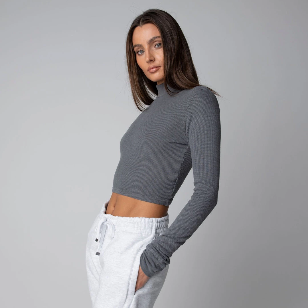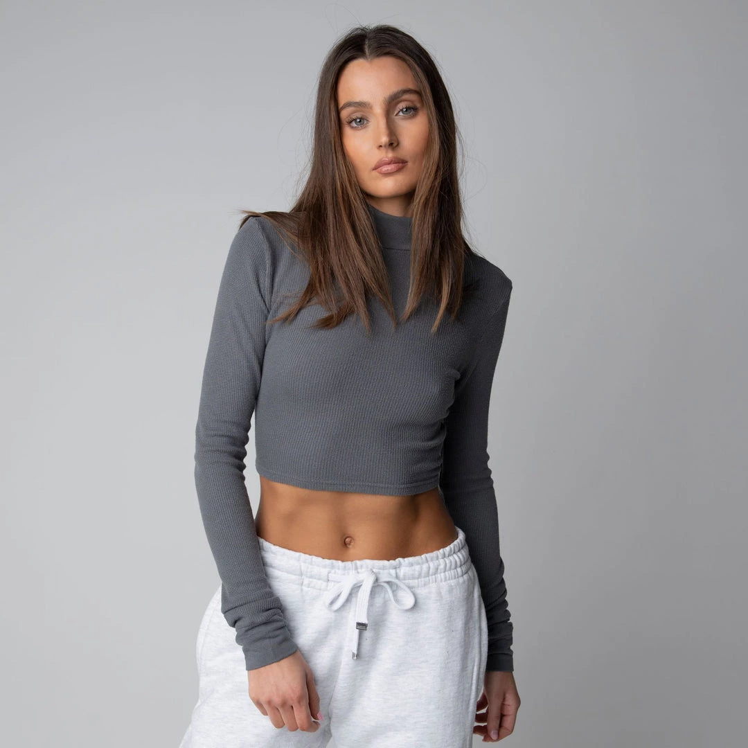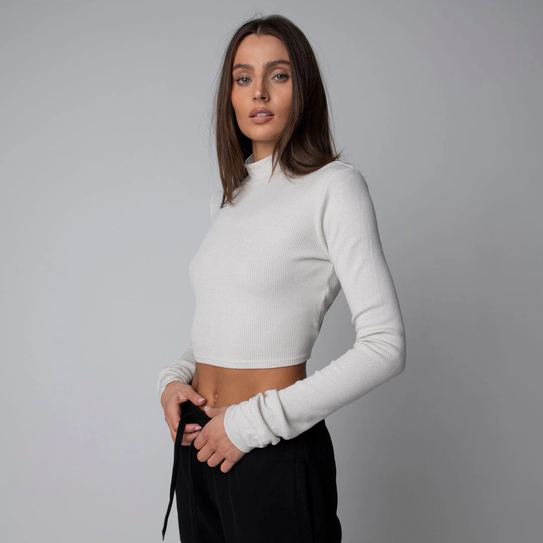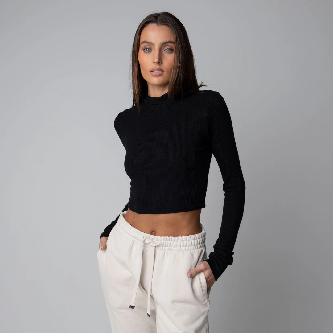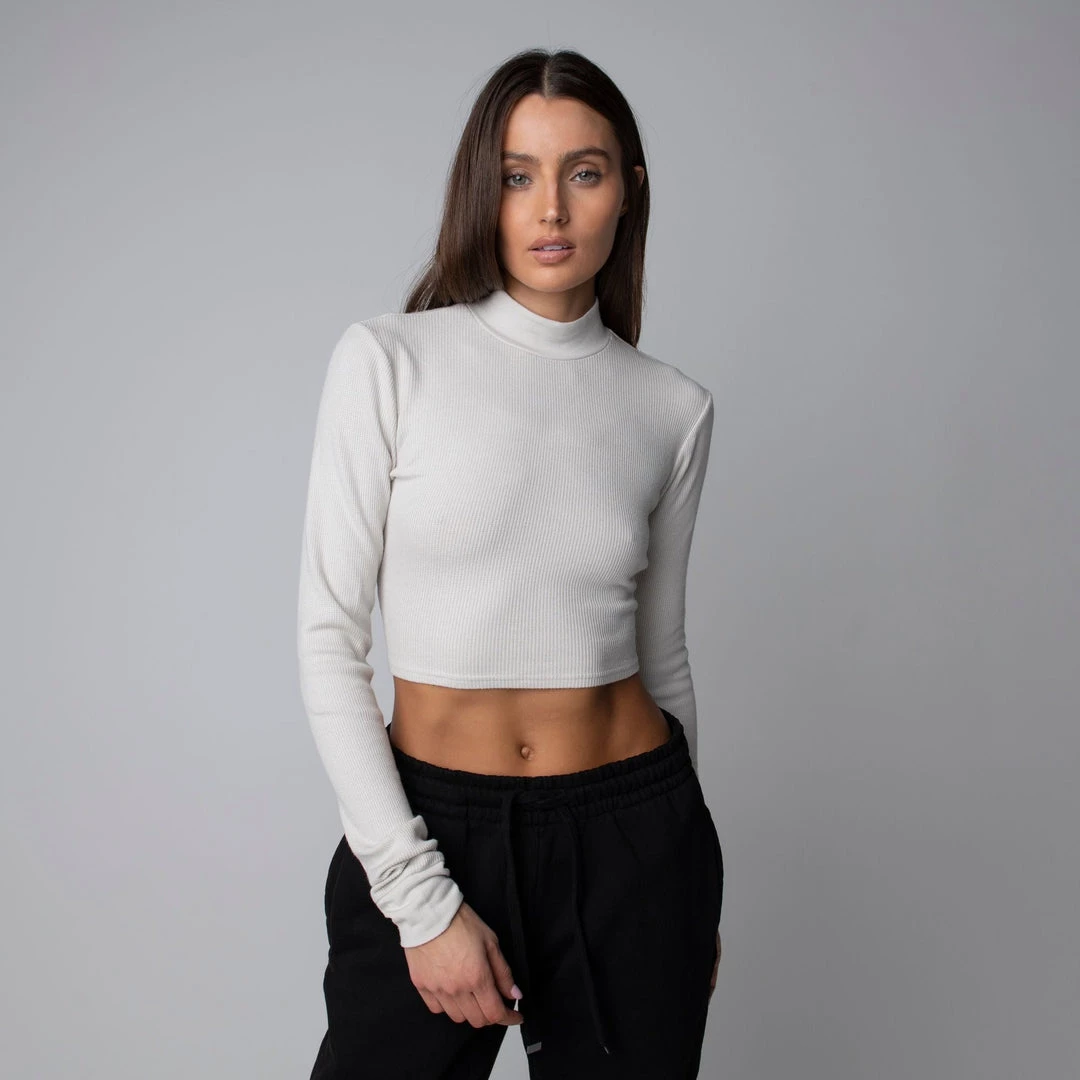 The perfect layering piece for cooler weather. Featuring a mock neck collar with a cropped length this piece can be styled up or down and paired with anything. Made with a mid-weight modal-spandex blend this crop is super soft and has the perfect amount of stretch.Â