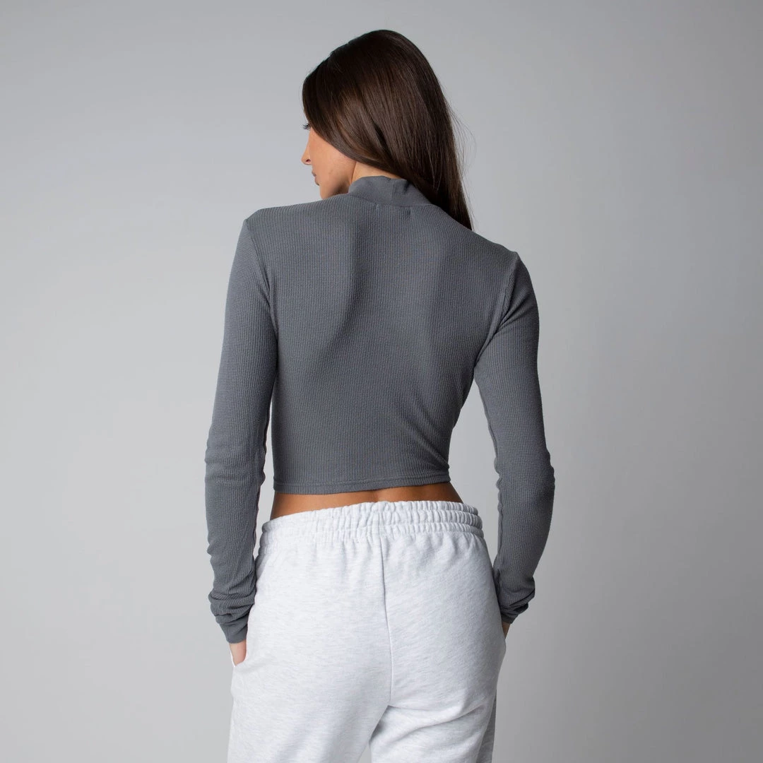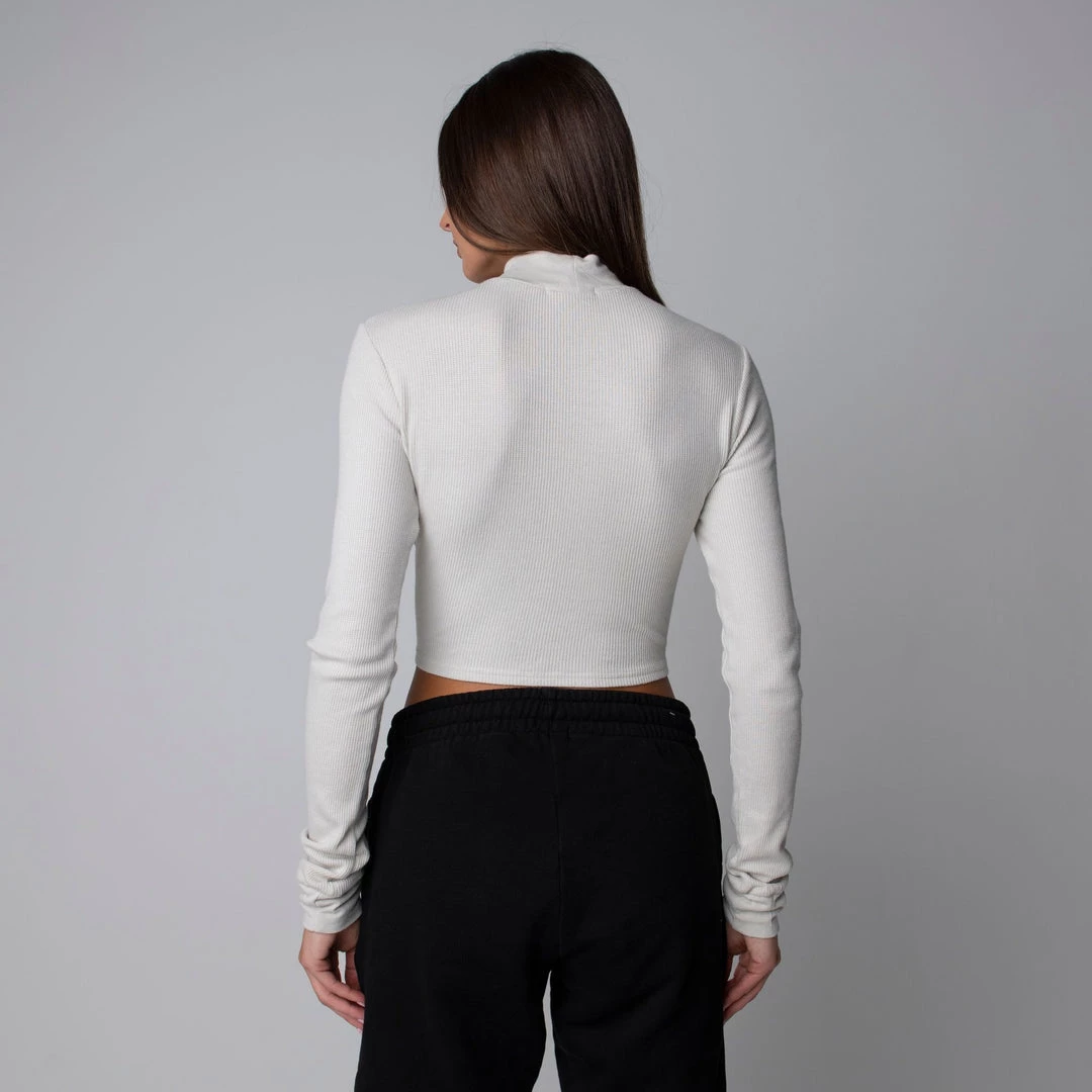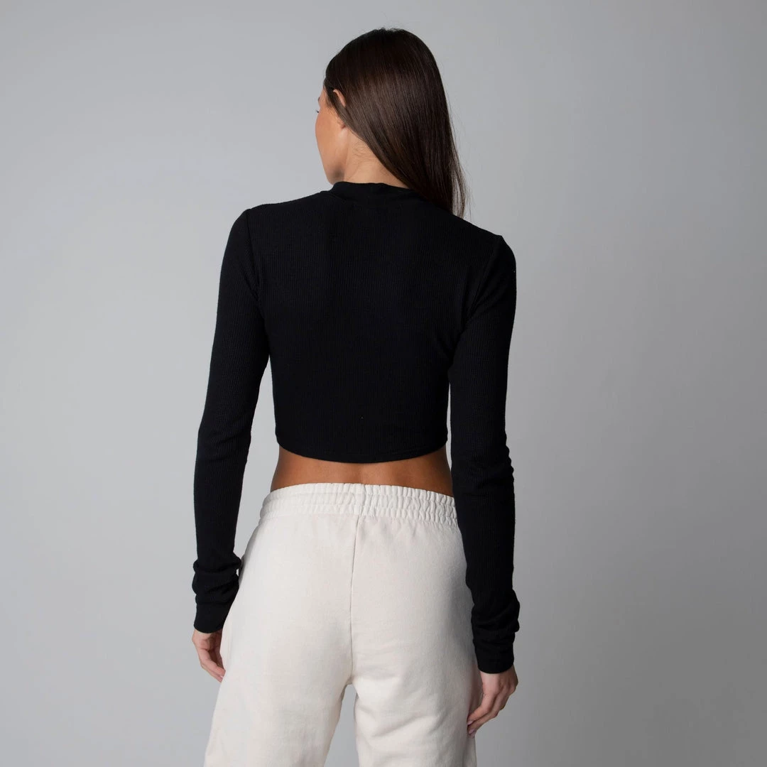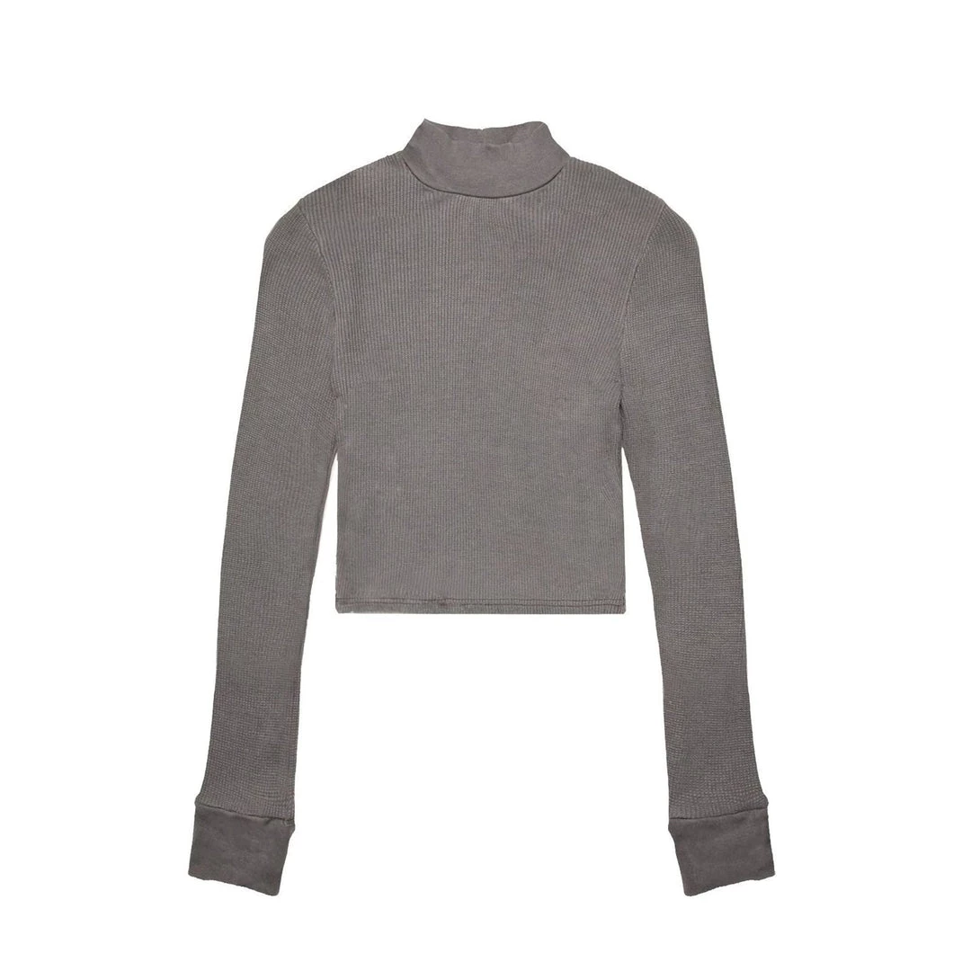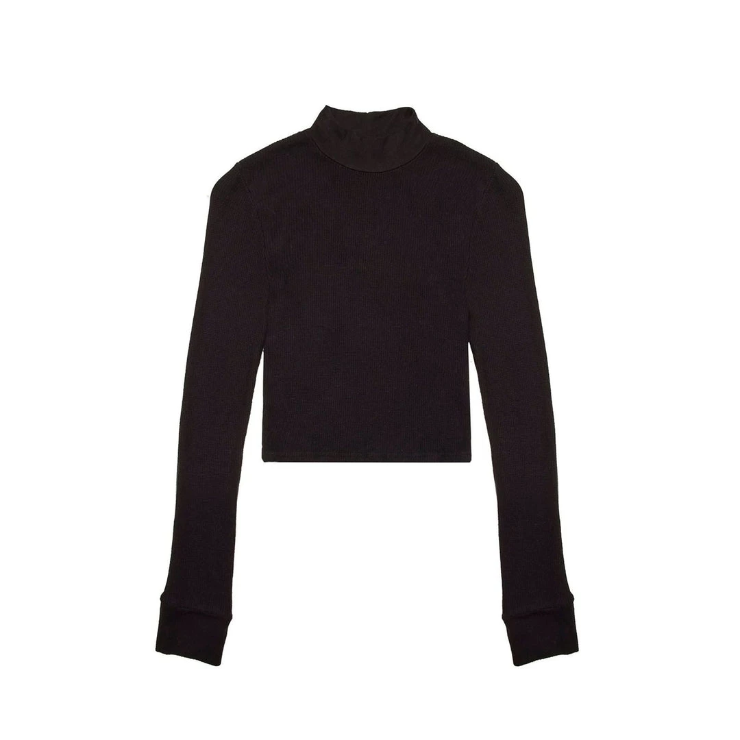 The perfect layering piece for cooler weather. Featuring a mock neck collar with a cropped length this piece can be styled up or down and paired with anything. Made with a mid-weight modal-spandex blend this crop is super soft and has the perfect amount of stretch.Â