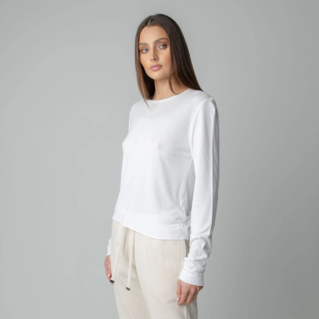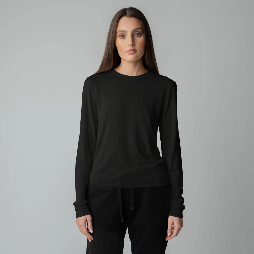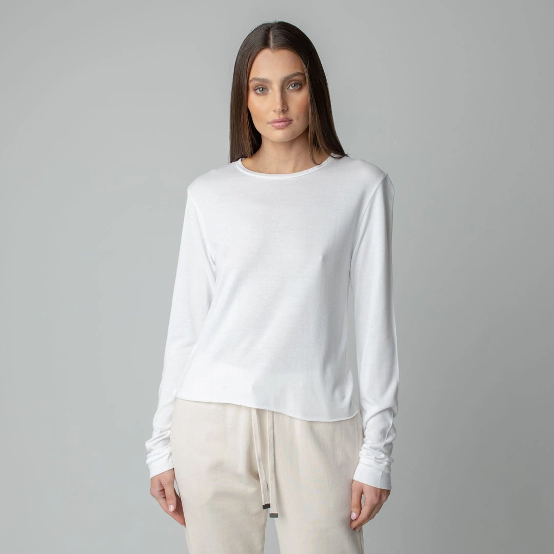 Our sleek textured Modal long sleeve drapes perfectly on the body with the right amount of scoop on your chest, this Summer essential makes a lasting impression.