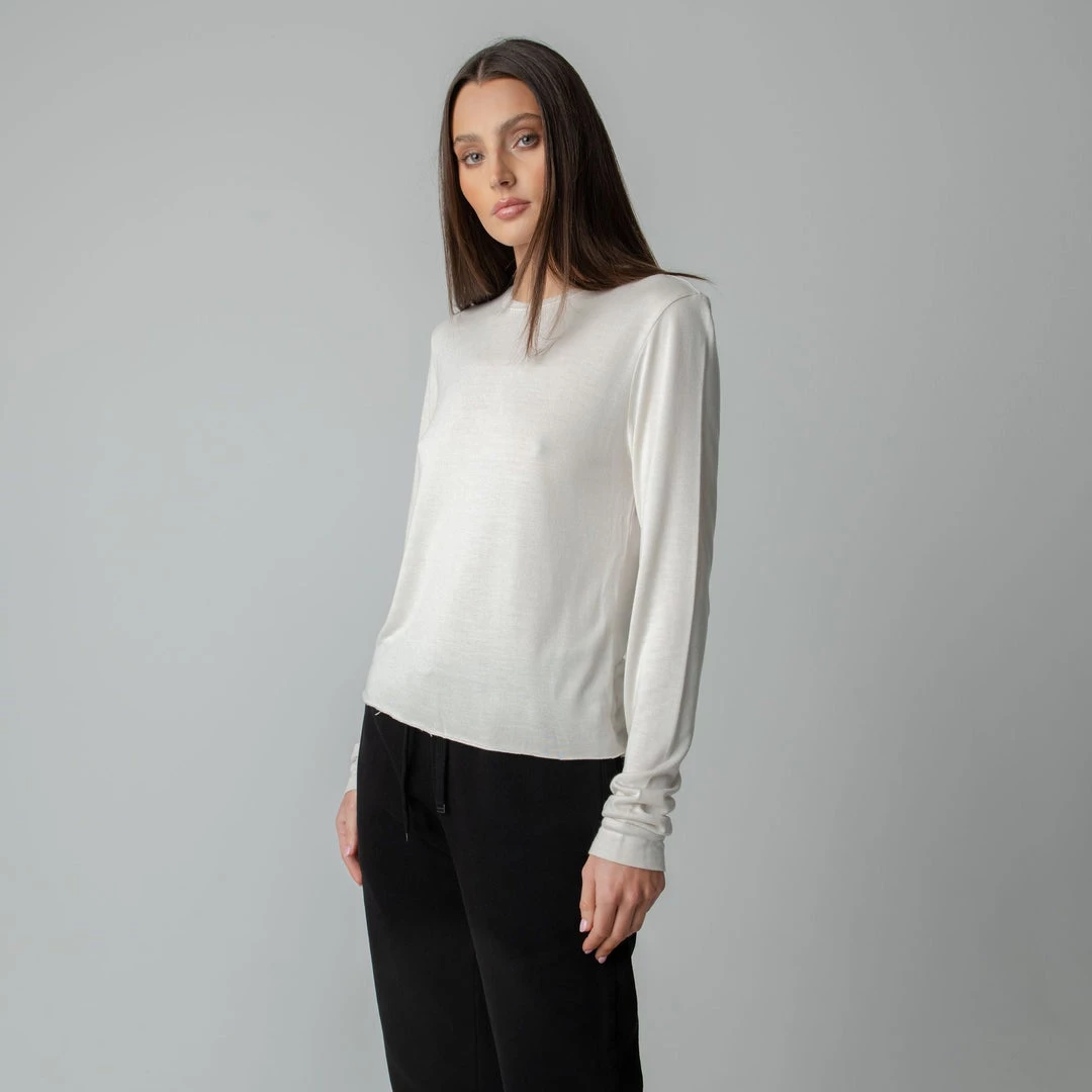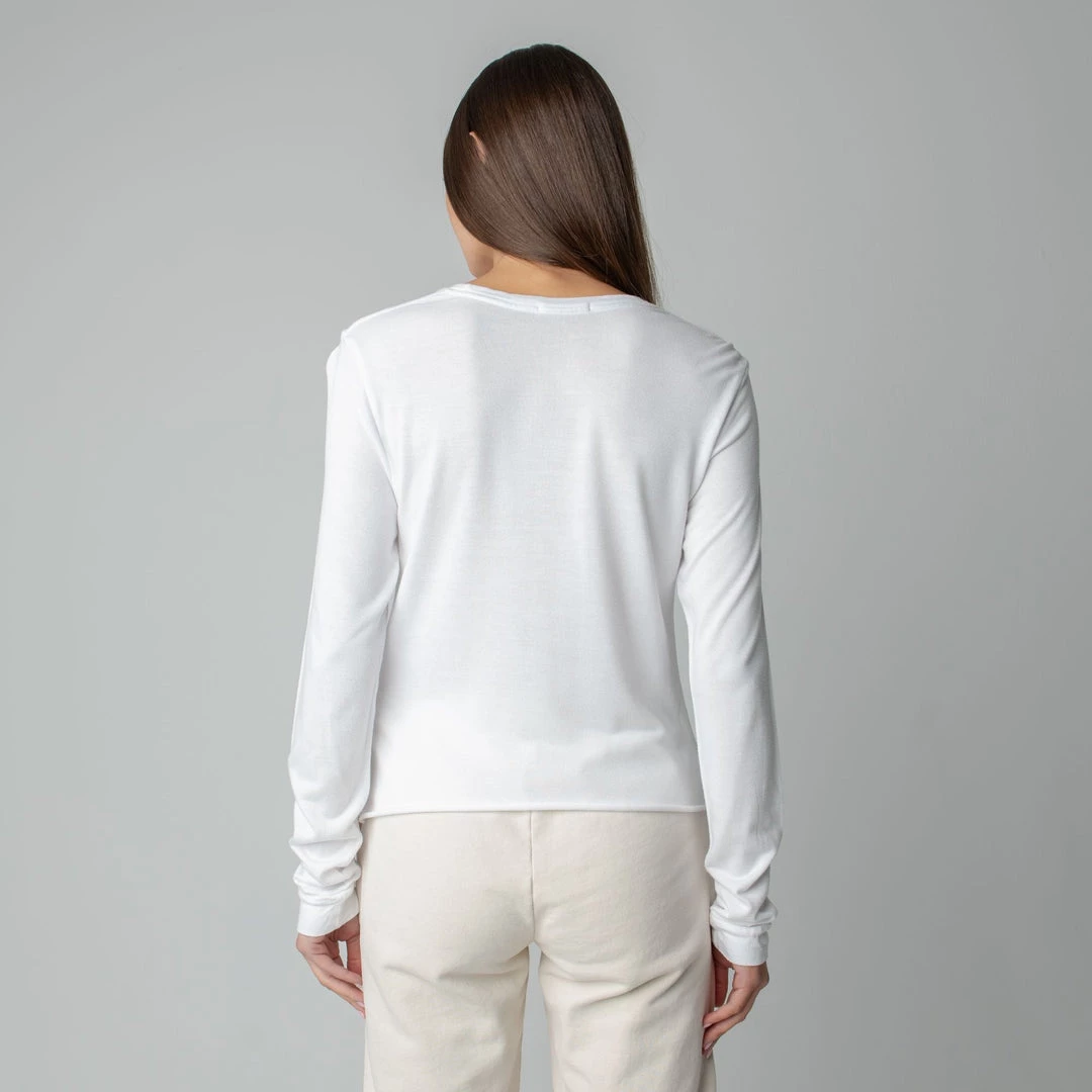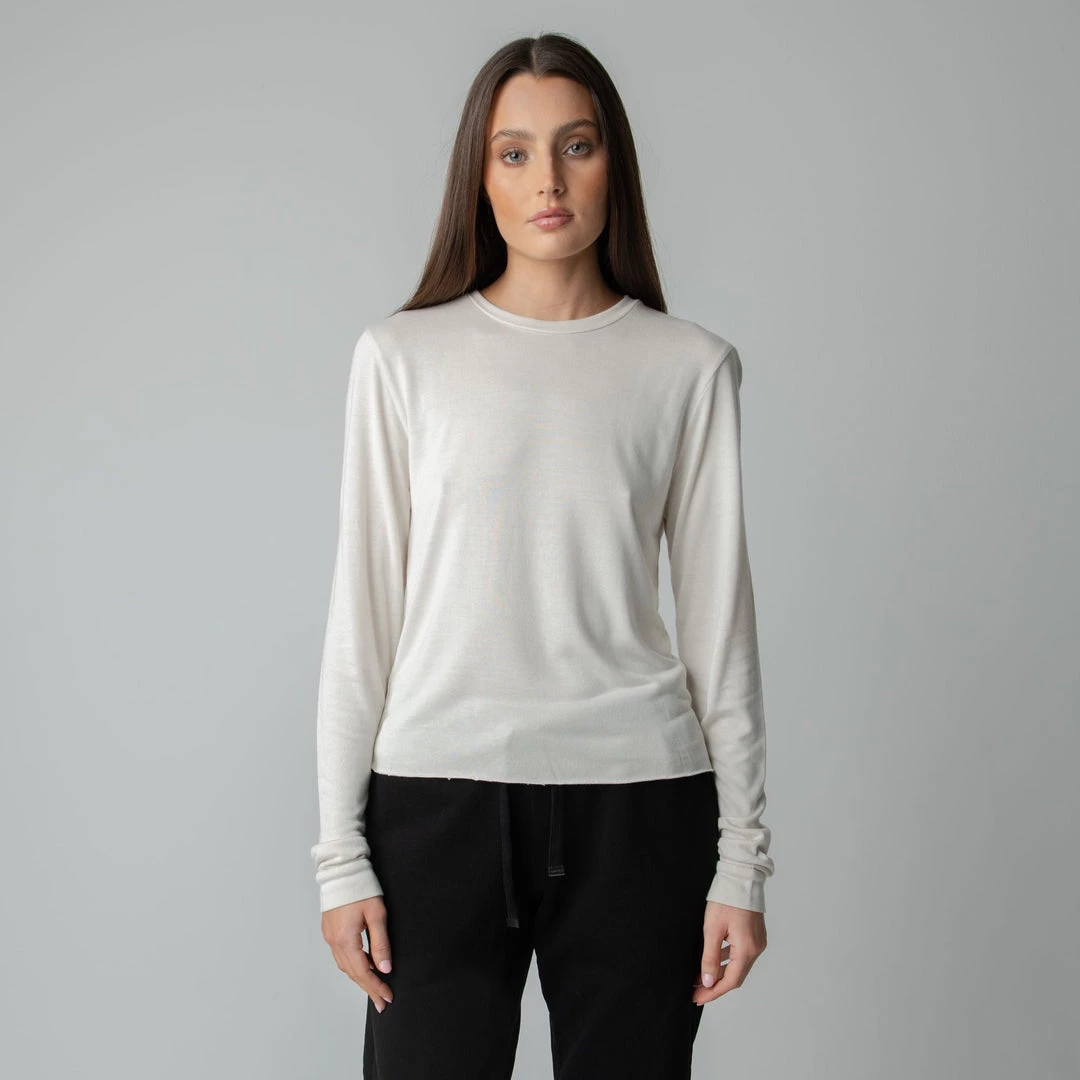 Our sleek textured Modal long sleeve drapes perfectly on the body with the right amount of scoop on your chest, this Summer essential makes a lasting impression.