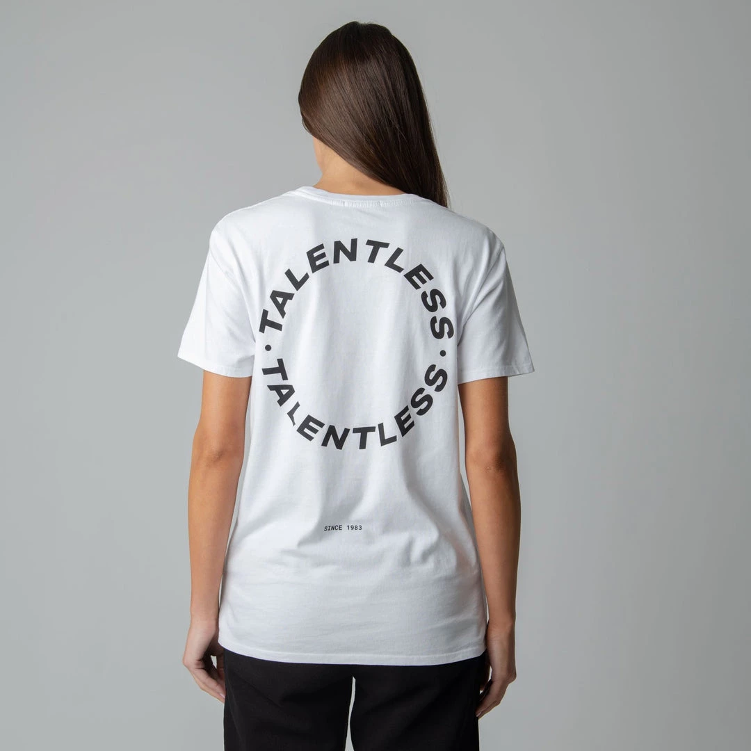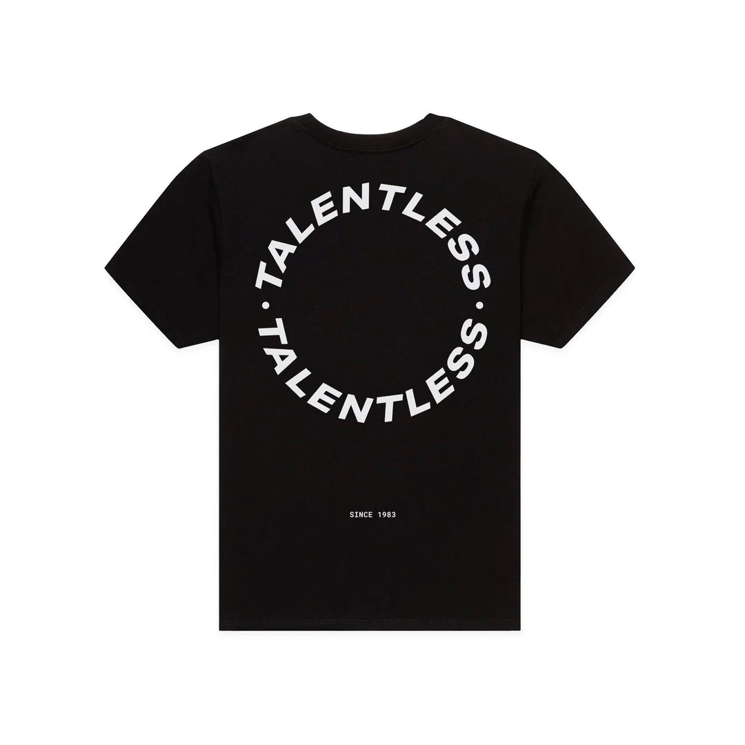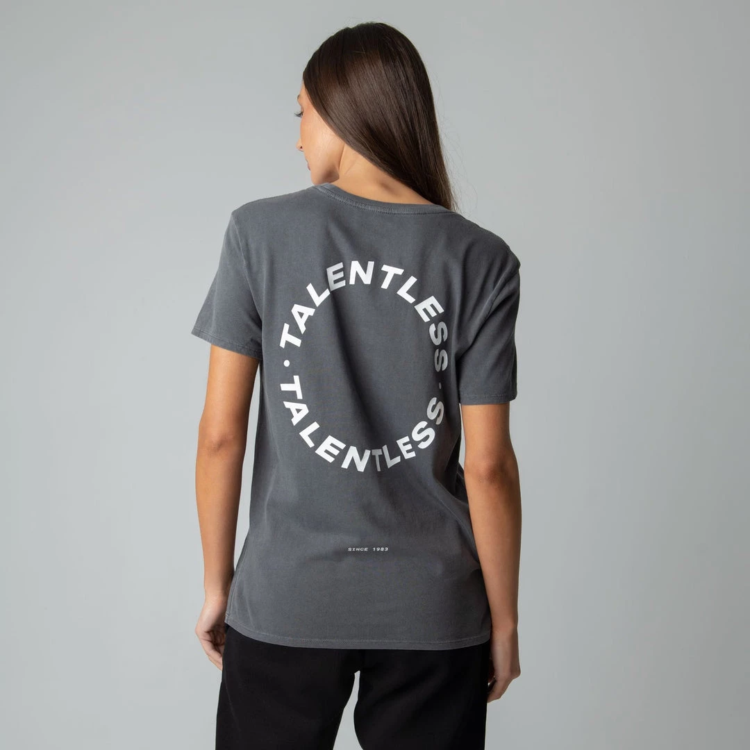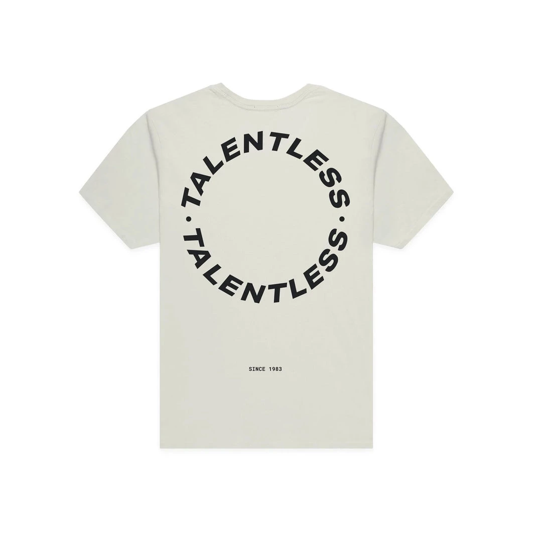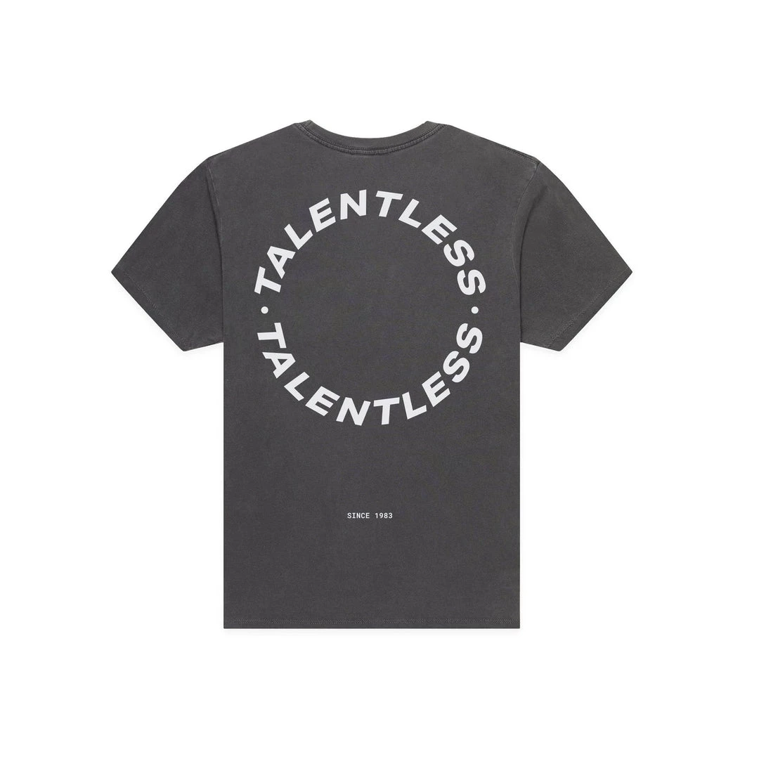 The Cirlce Logo tee is made from lightweight, pigment dyed, 100% cotton for an ultra soft feel and perfect relaxed fit with our classic TALENTLESS circle logo. This classic piece will never go out of style.