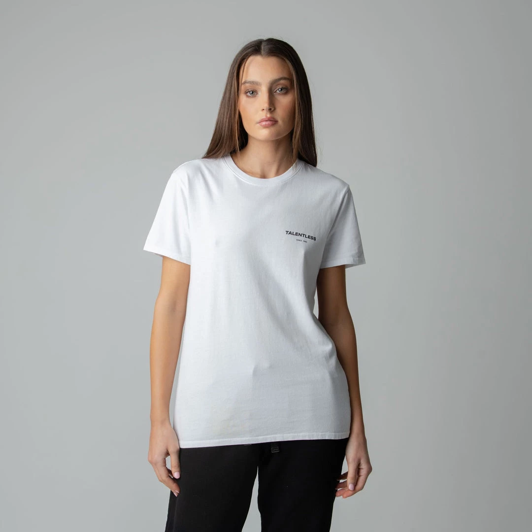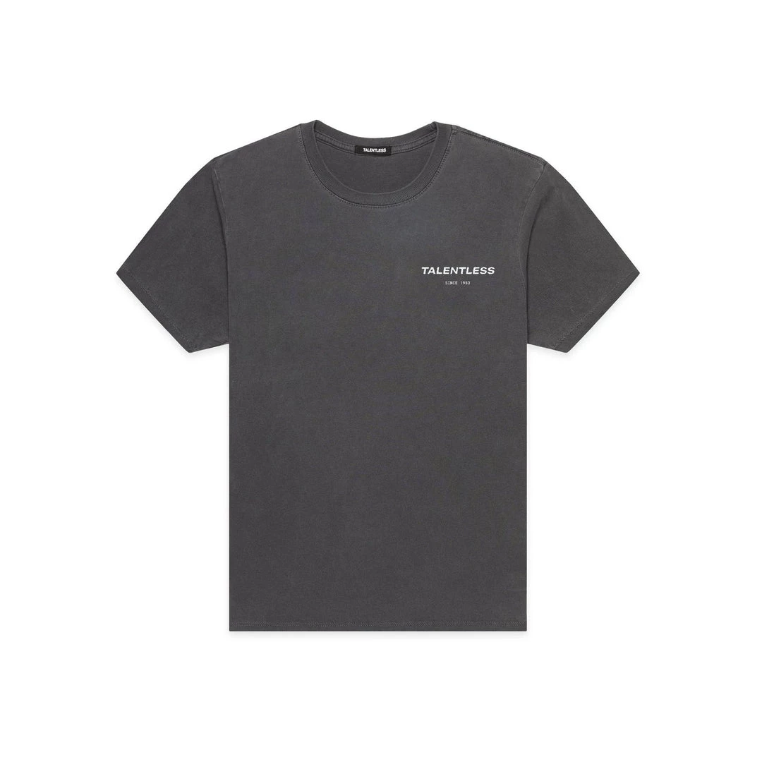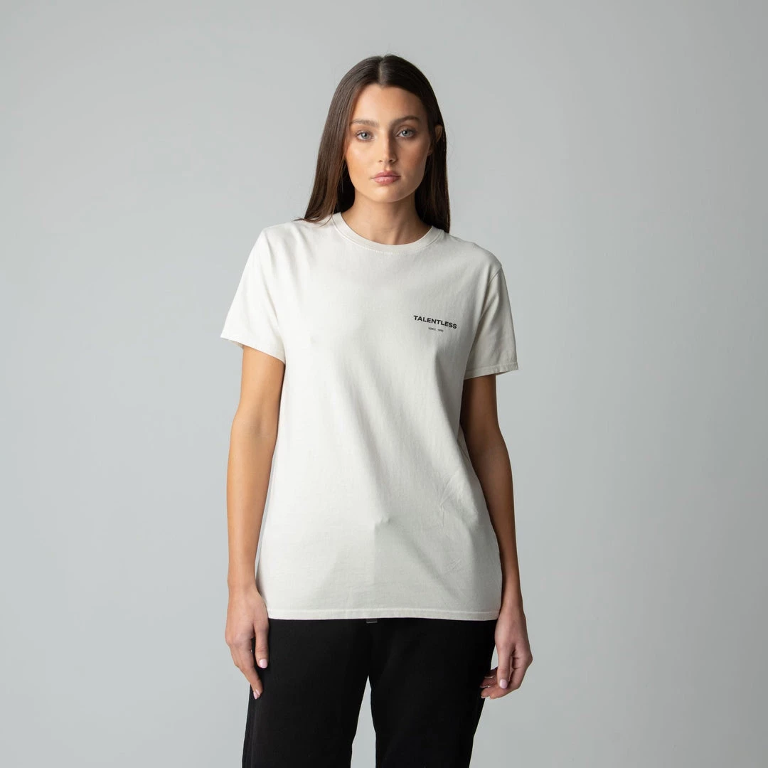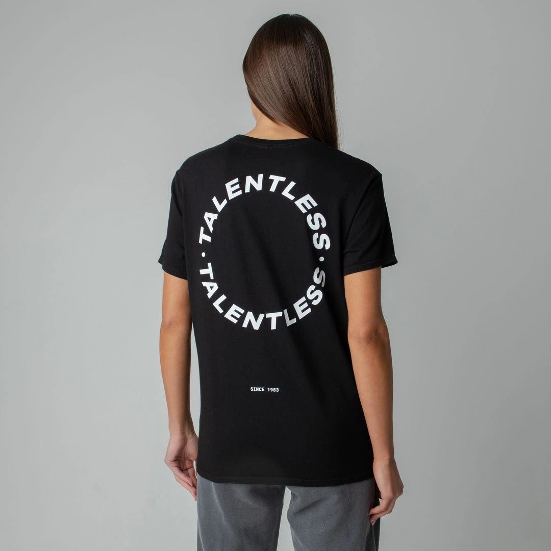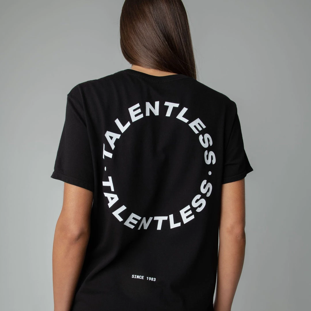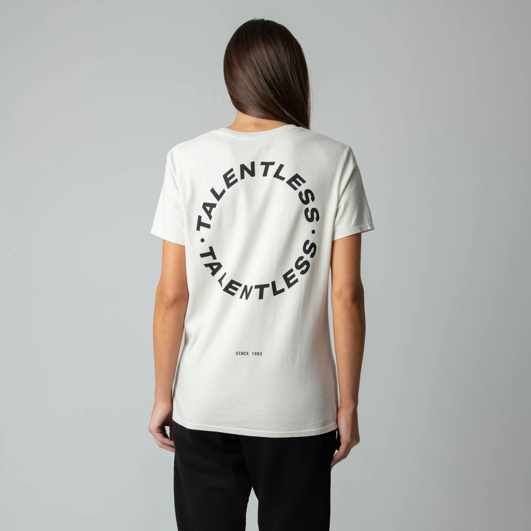 The Cirlce Logo tee is made from lightweight, pigment dyed, 100% cotton for an ultra soft feel and perfect relaxed fit with our classic TALENTLESS circle logo. This classic piece will never go out of style.