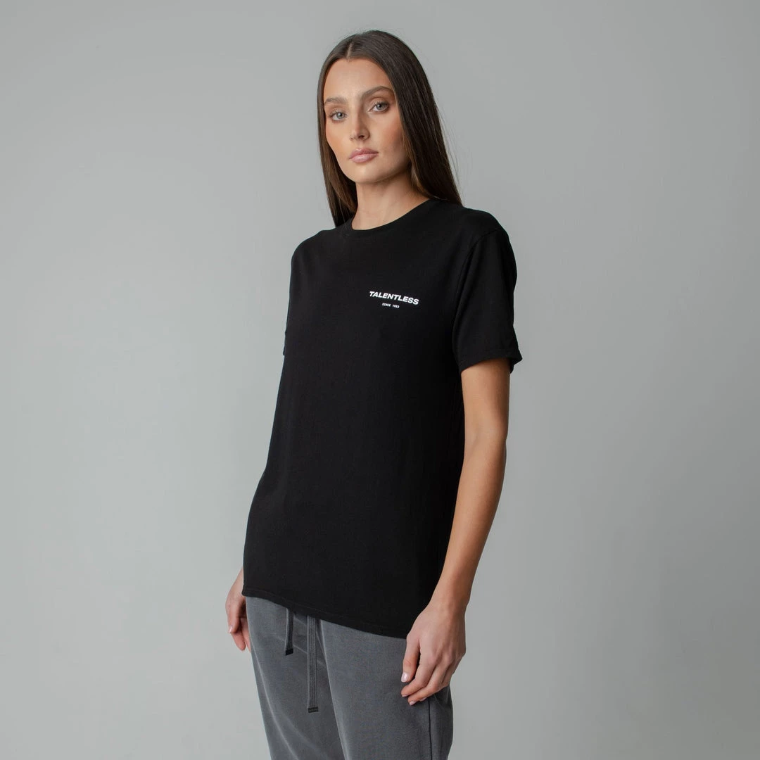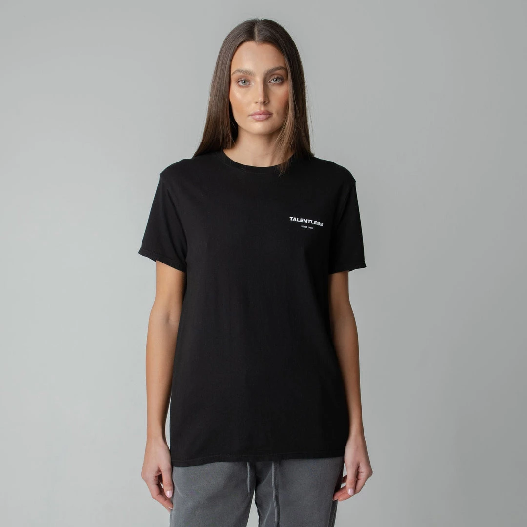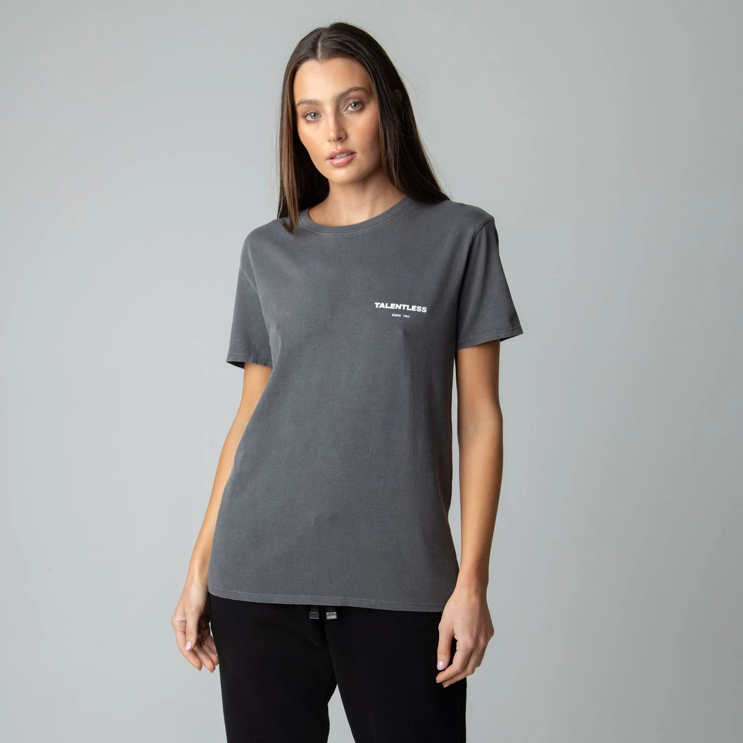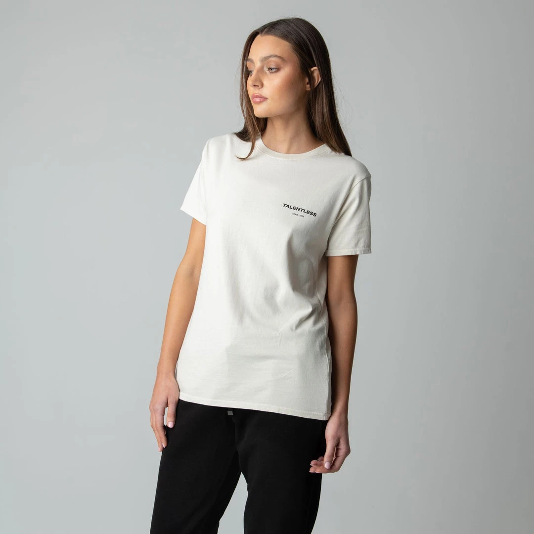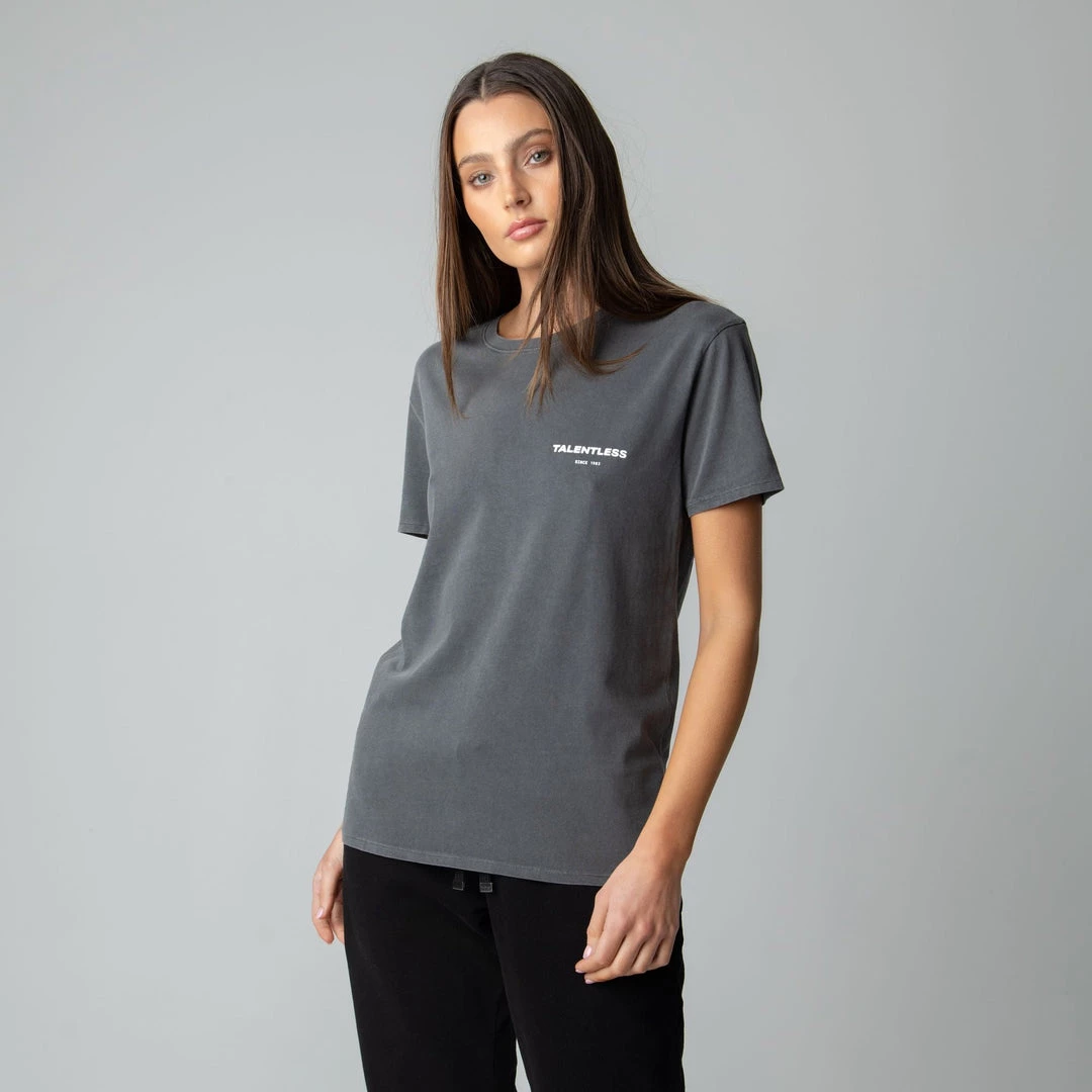 The Cirlce Logo tee is made from lightweight, pigment dyed, 100% cotton for an ultra soft feel and perfect relaxed fit with our classic TALENTLESS circle logo. This classic piece will never go out of style.