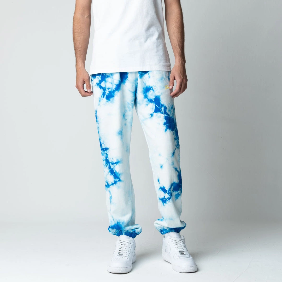 Introducing Cloud, a subtle yet unique crystal wash blend of blue and white. . Made from cloud-like 100% cotton fleece and featuring an elastic waistband, ribbed cuffs, custom and dual pockets at the seam. Our Talentless signature logo is branded with high density print. Our latest Cloud Wash is seasonally inspired, ideal for the upcoming months.Â