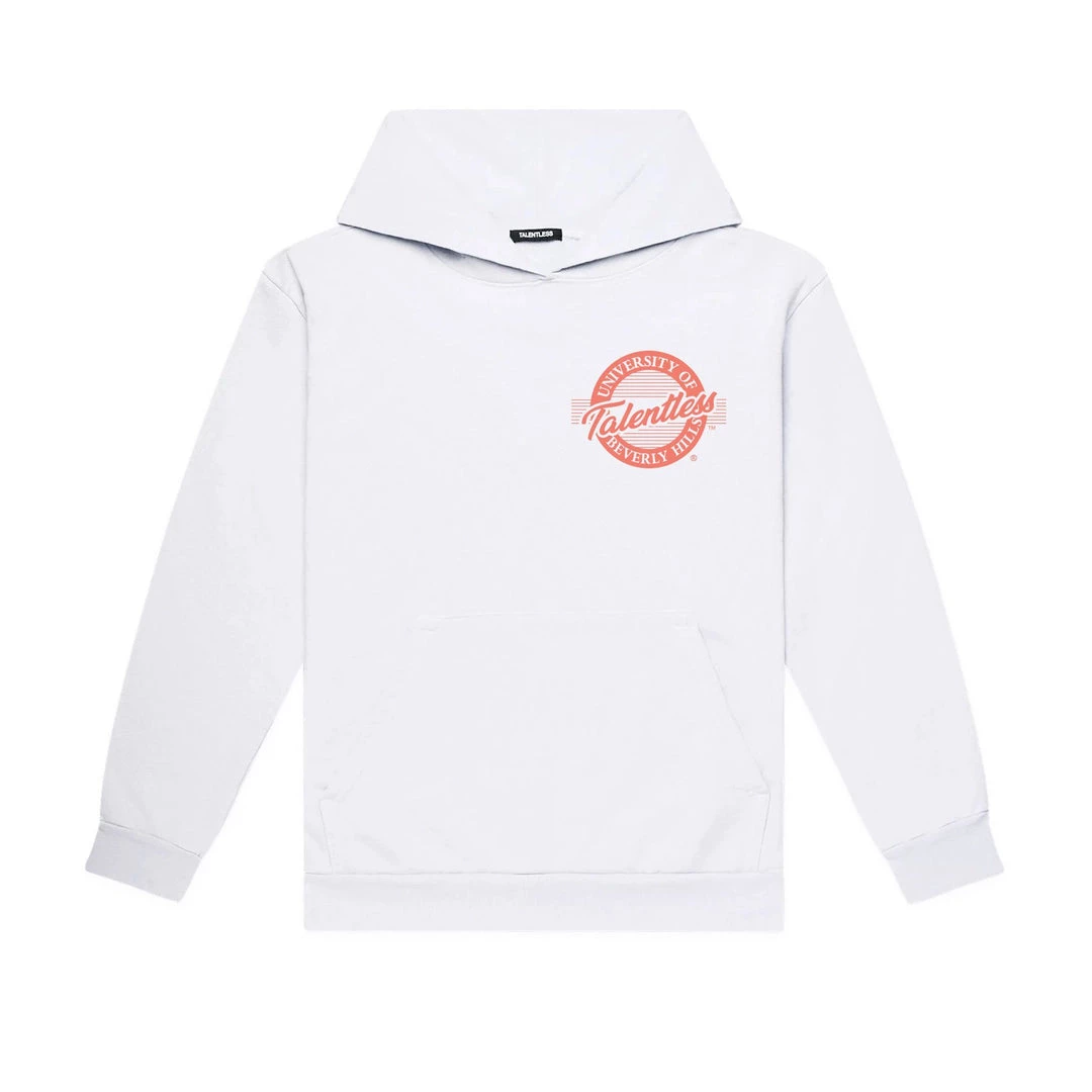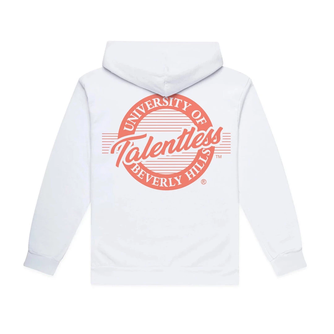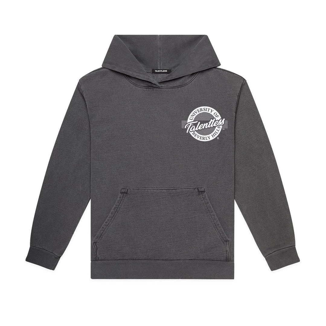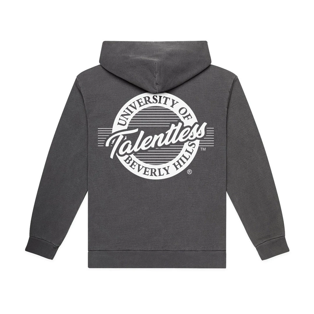 Officially accepted into Talentless University of Beverly Hills. This weighted hoodie is constructed from 100% cotton fleece giving you that “show off on your first day of school” feel. The Talentless University graphic also gives alumni a chance to continue showing off their affiliation.